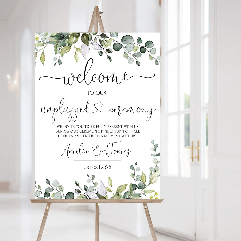 Unplugged Ceremony Eucalyptus Signs | 5 Personalized Printables