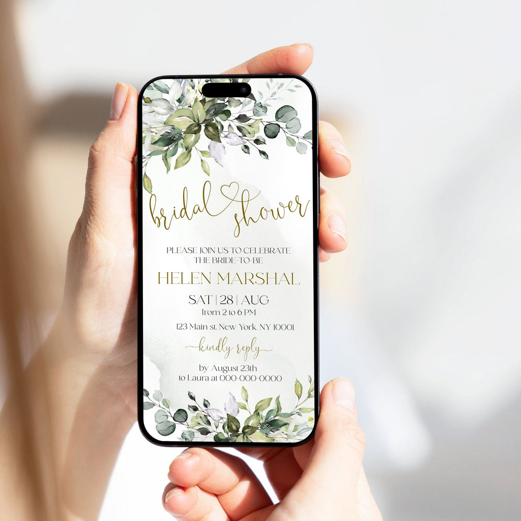 Greenery Bridal Shower Evites | Bridal Shower Digital Intite