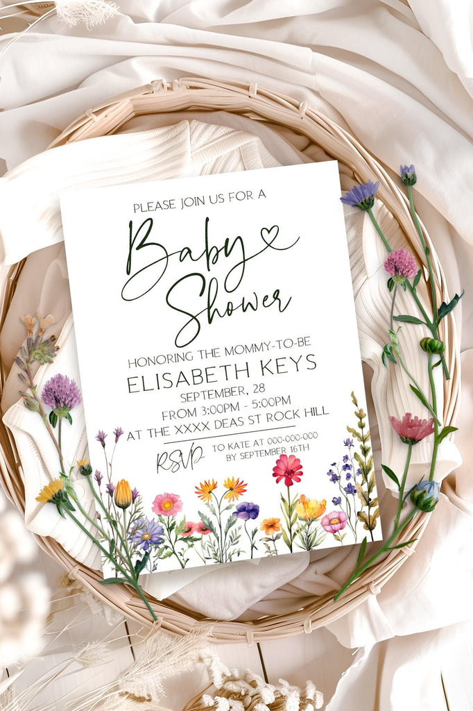 Wildflowers Baby Shower Invitations | 3 Sizes | Personalized Printables