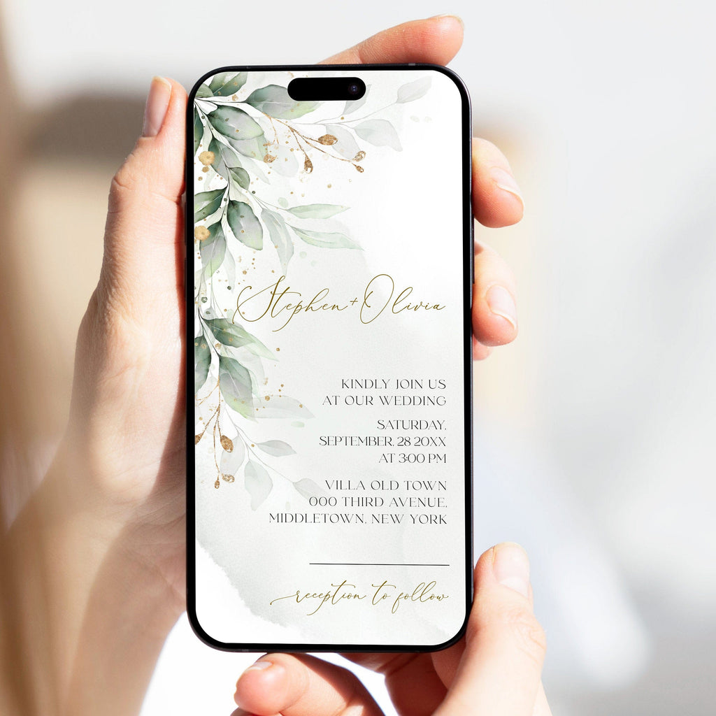 Gold Eucalyptus Wedding Sms Invite | Greenery Wedding Electronic Invite