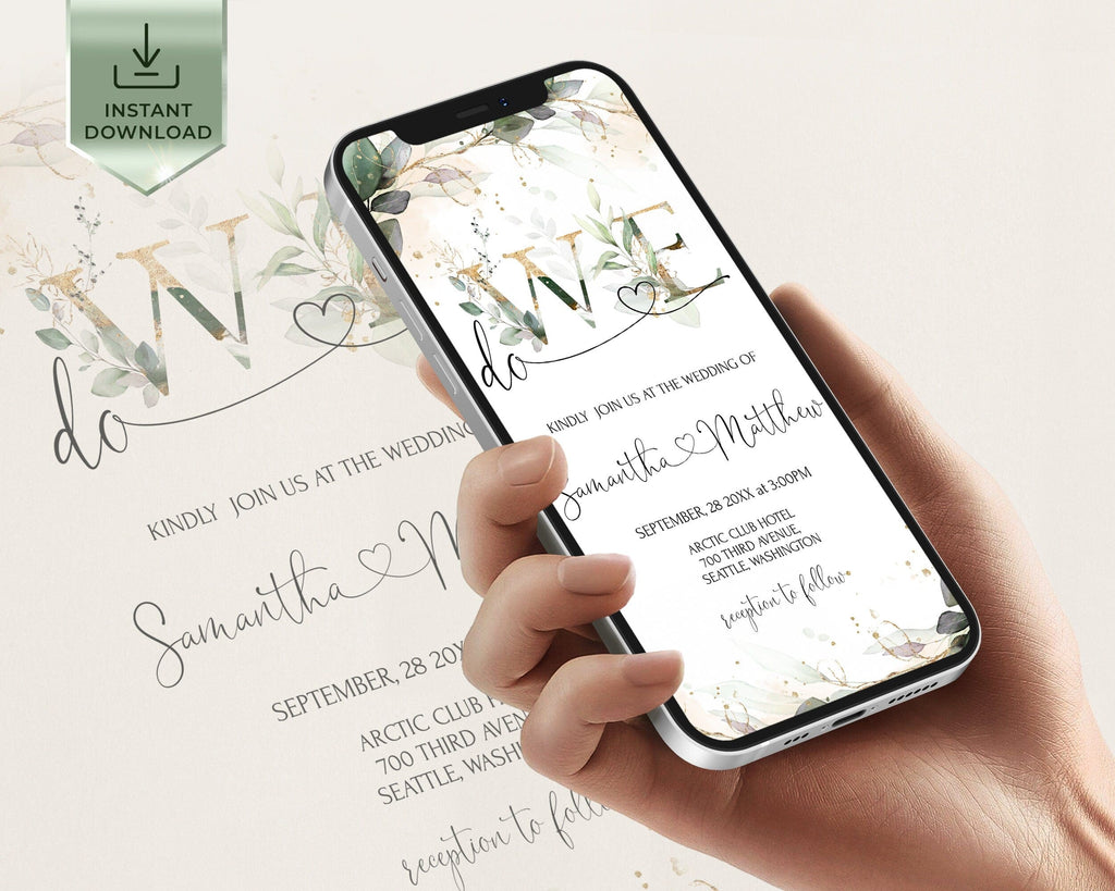 Sage Eucalyptus Digital Wedding Invites | Greenery Gold eInvite
