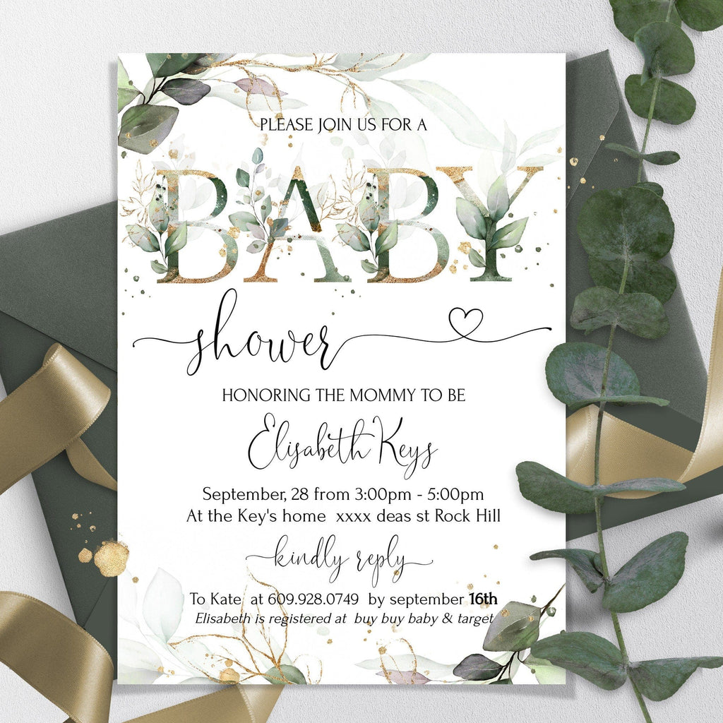 Sage Green Baby Shower Invitations | Gender Neutral Baby Shower Printables