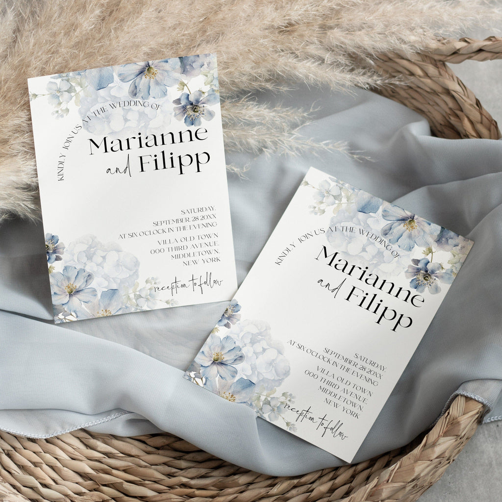 Soft Blue Arch Themed Wedding Invite | 3 Sizes | DIY Bride Inspo