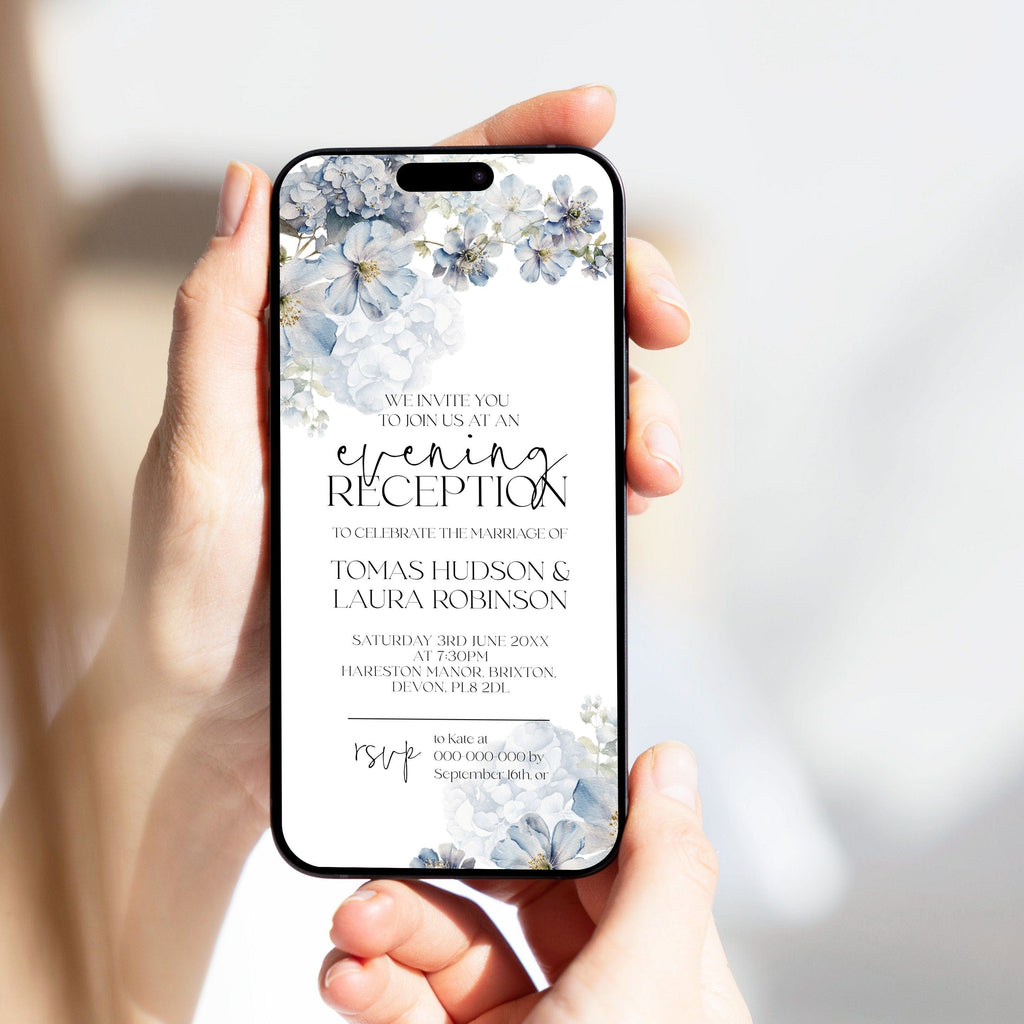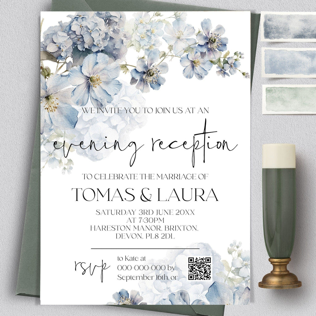 Dusty Blue Evening Reception Invitation | 3 Sizes | Floral Bloom Inspo