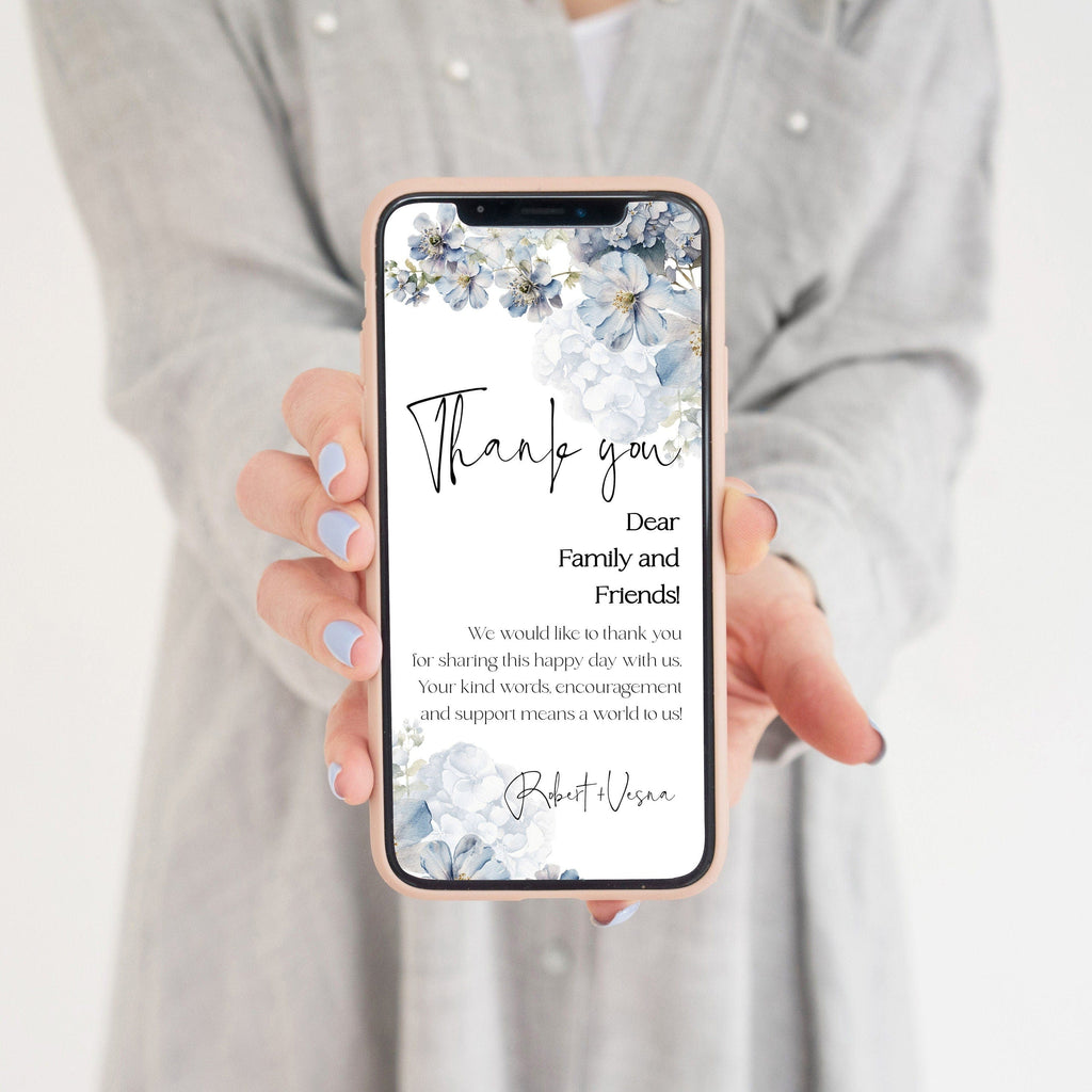 Dusty Blue Digital Thank you card | Bloom Blue Floral Theme | Instant Download
