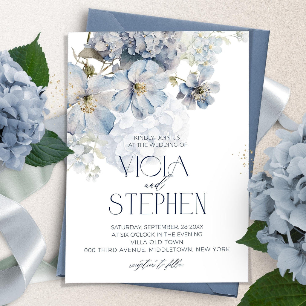 Soft Blue Wedding Invitations | 3 Dusty Rose Wedding invites | DIY Bride Inspo