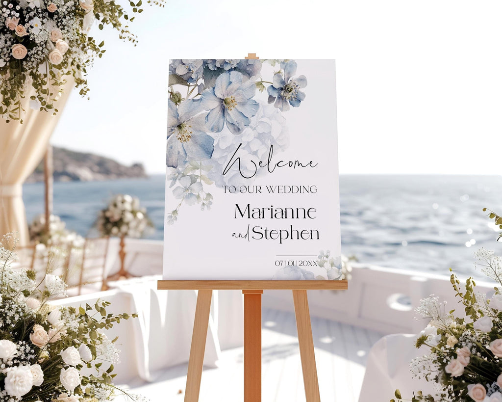 Dusty Blue Wedding Welcome Signs | 5 Sizes | Soft Blue Floral Themed Printables