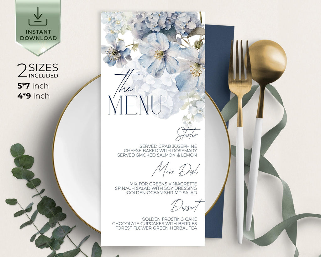 Dusty Blue Floral Themed Menu | 2 Sizes | DIY Table Stationery