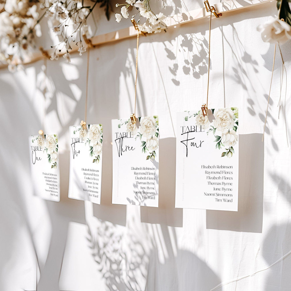 Ivory Rose Wedding Seating Cards | Printable Creamy Table Chart