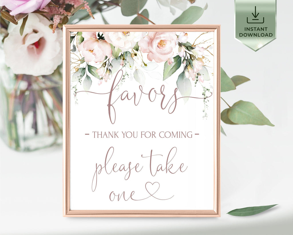 Blush Floral Wedding Favors Sign | 2 Sizes | Elegant Gold Script