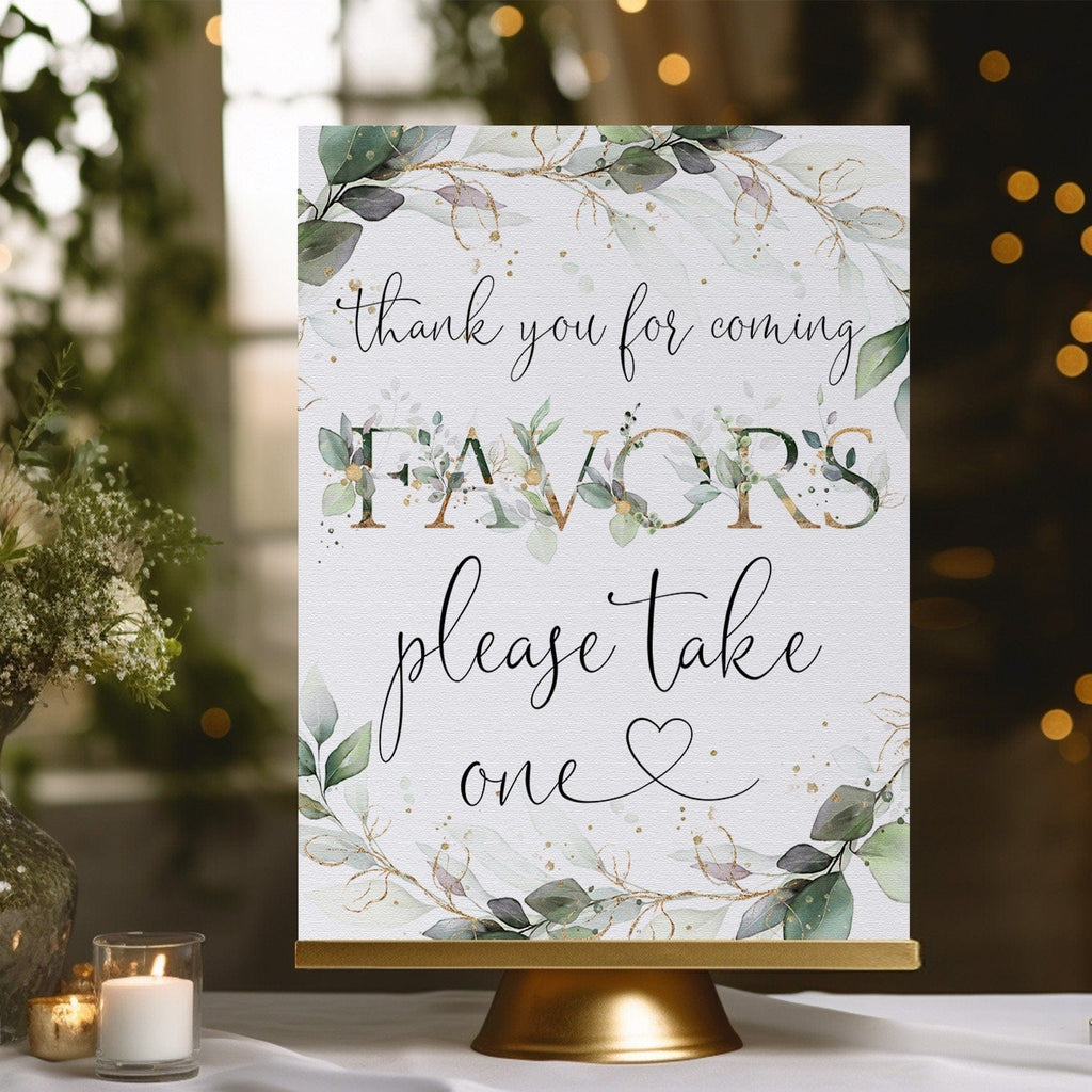 Greenery Gold Favors Sign | 2 Sizes | Editable Wedding Favor Signage