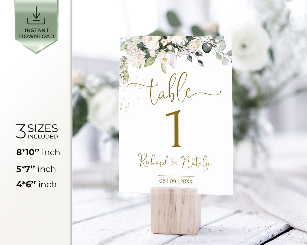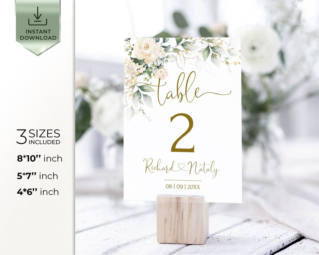Ivory Floral Wedding Table Numbers | 3 Sizes | Printable Gold Numbers