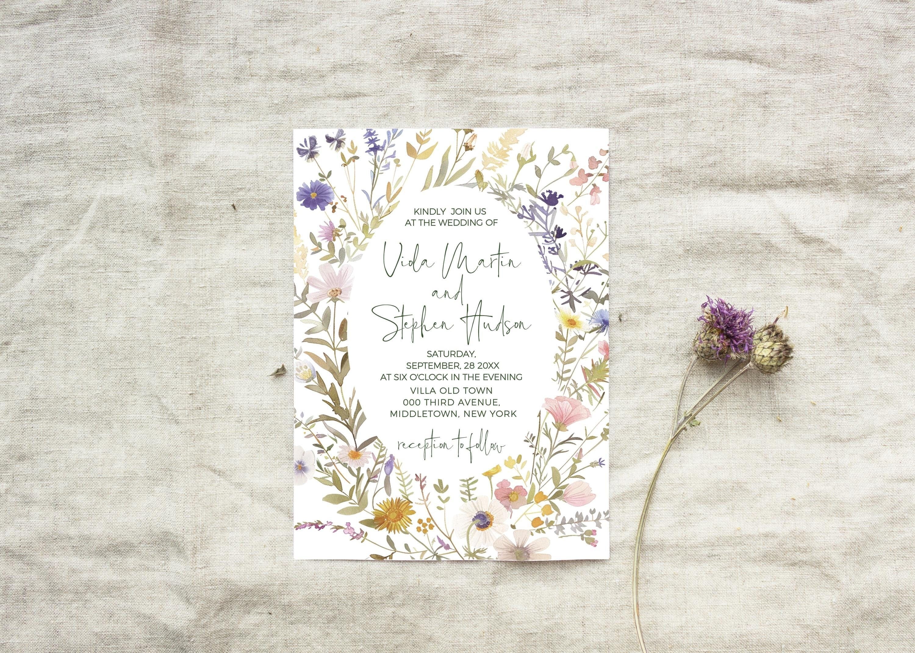 Printable Floral Wreath Wedding Invite | 3 Sizes | Wild Herbs Wedding invitation