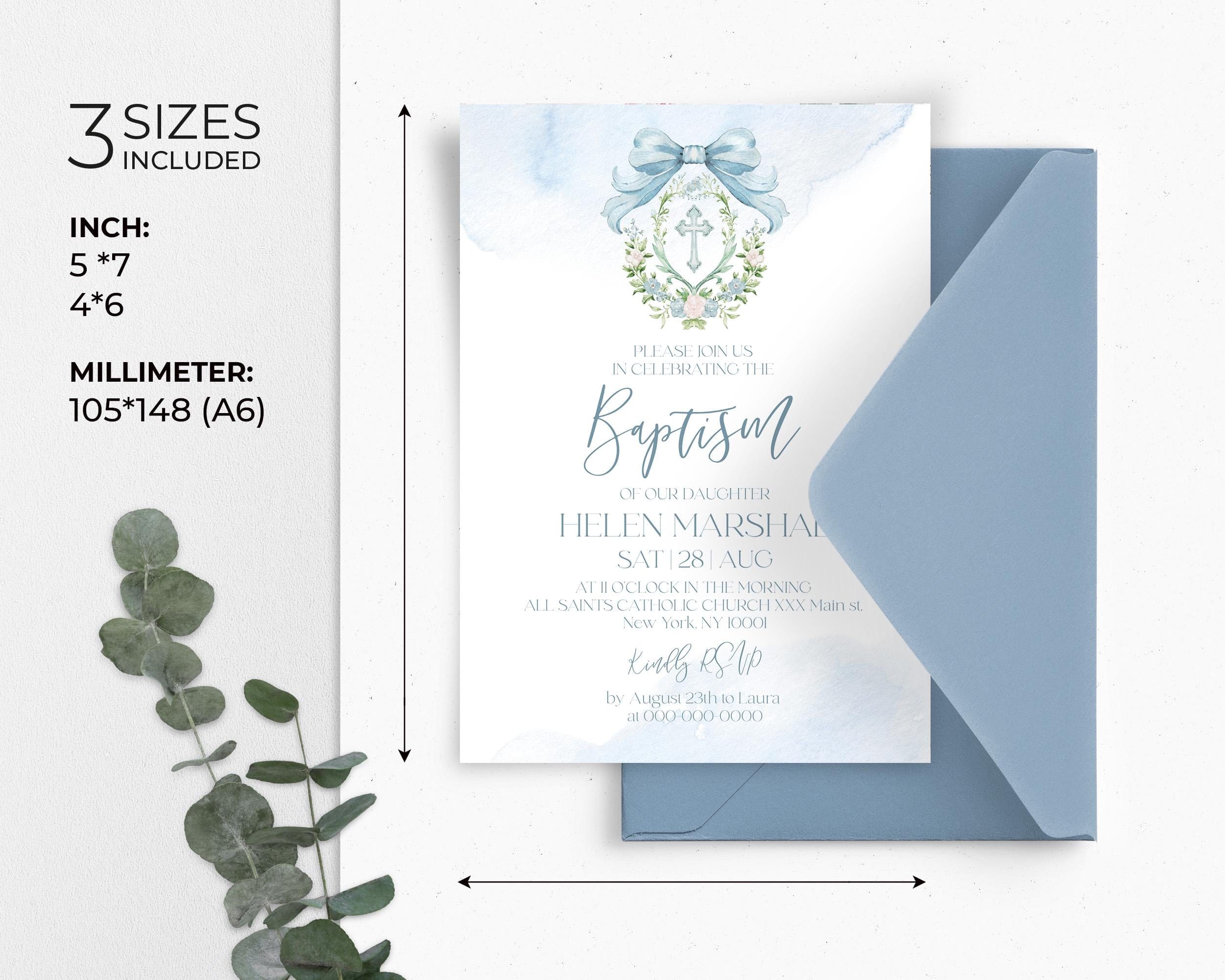 - Baptism Invitation Card: 5" x 7", 4" x 6'', A6 (105 x 148 mm)