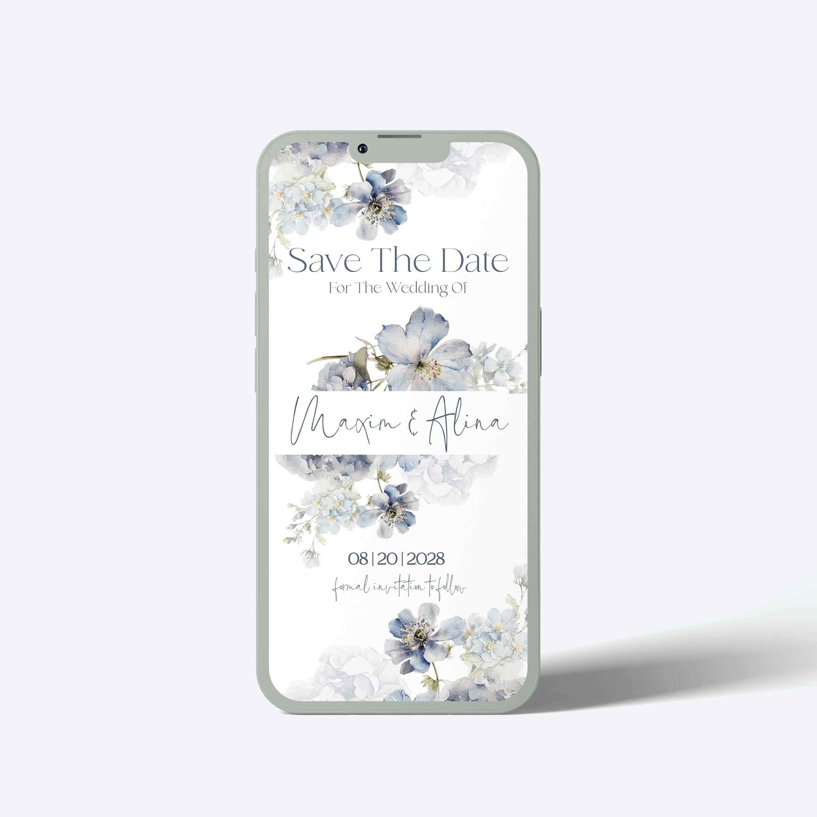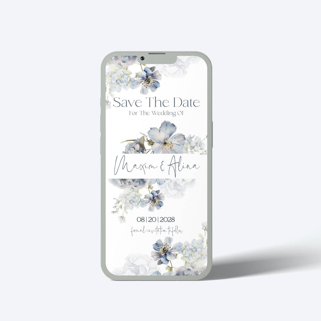 Blue Online Save the Date | Dusty Blue Flowers Digital Save the Date card