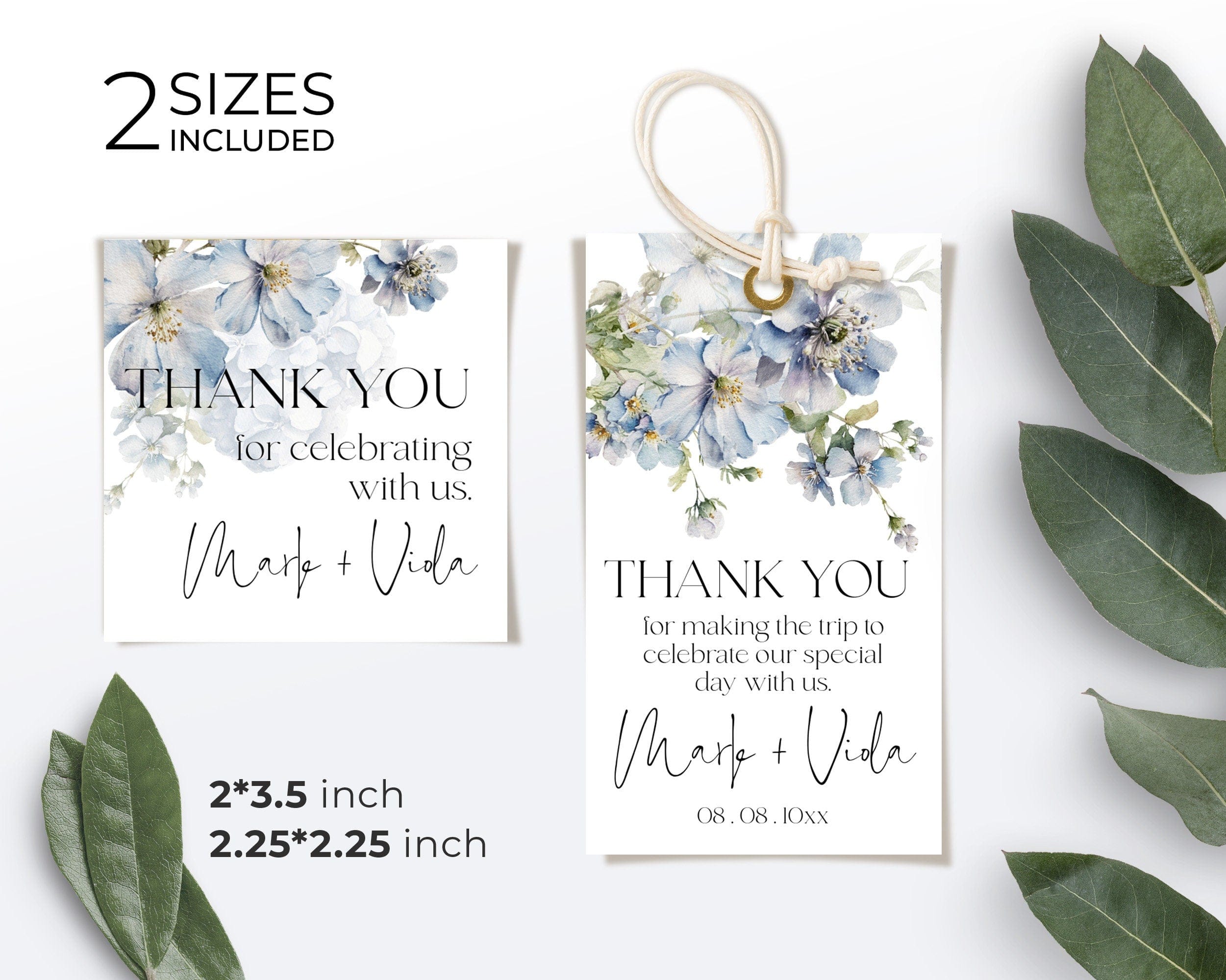 Blue Flowers Themed Favor Tag | 2 Sizes | DIY Wedding Gift Tags