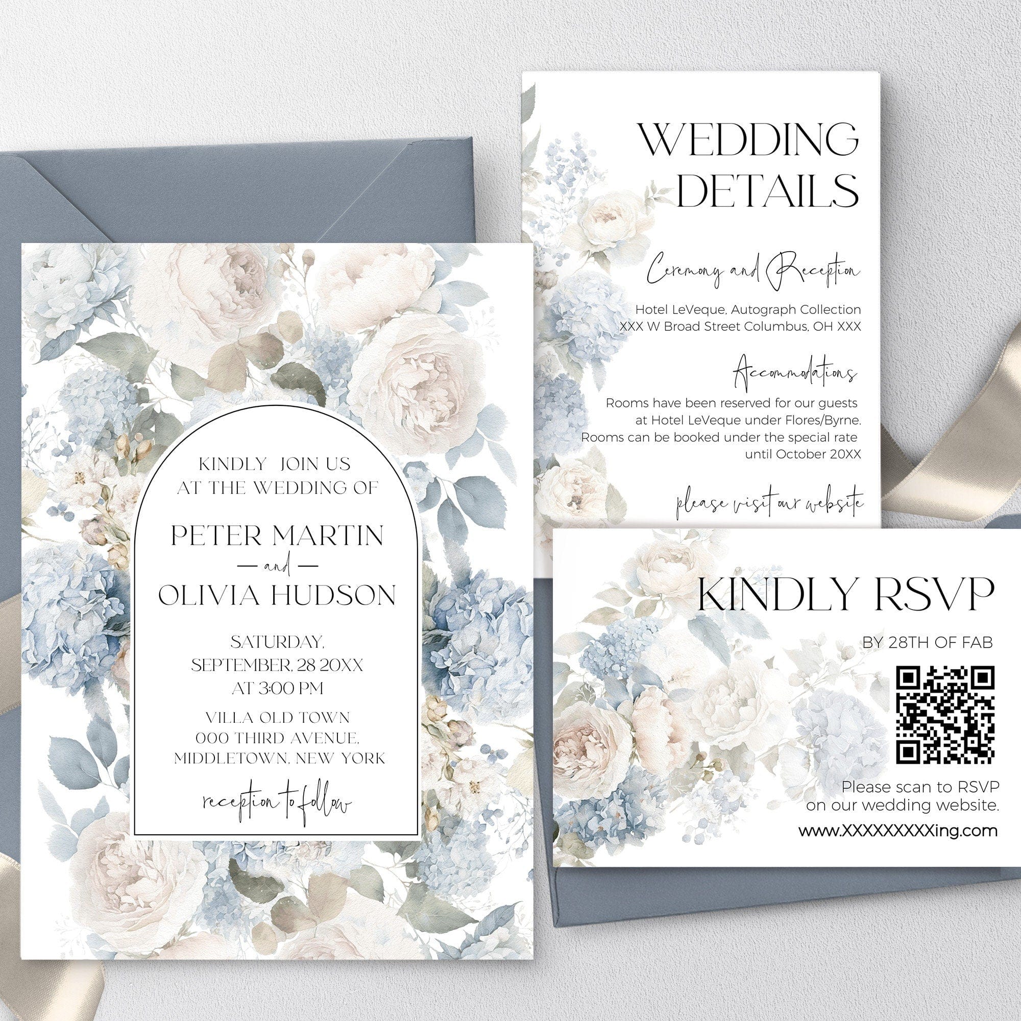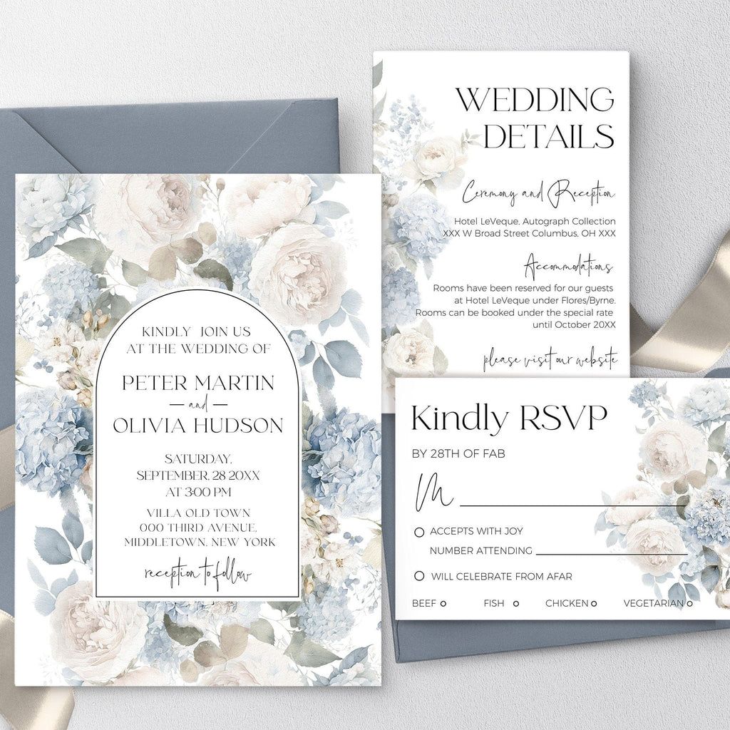 Blue Wedding Invitation Suite, EDITABLE Templates