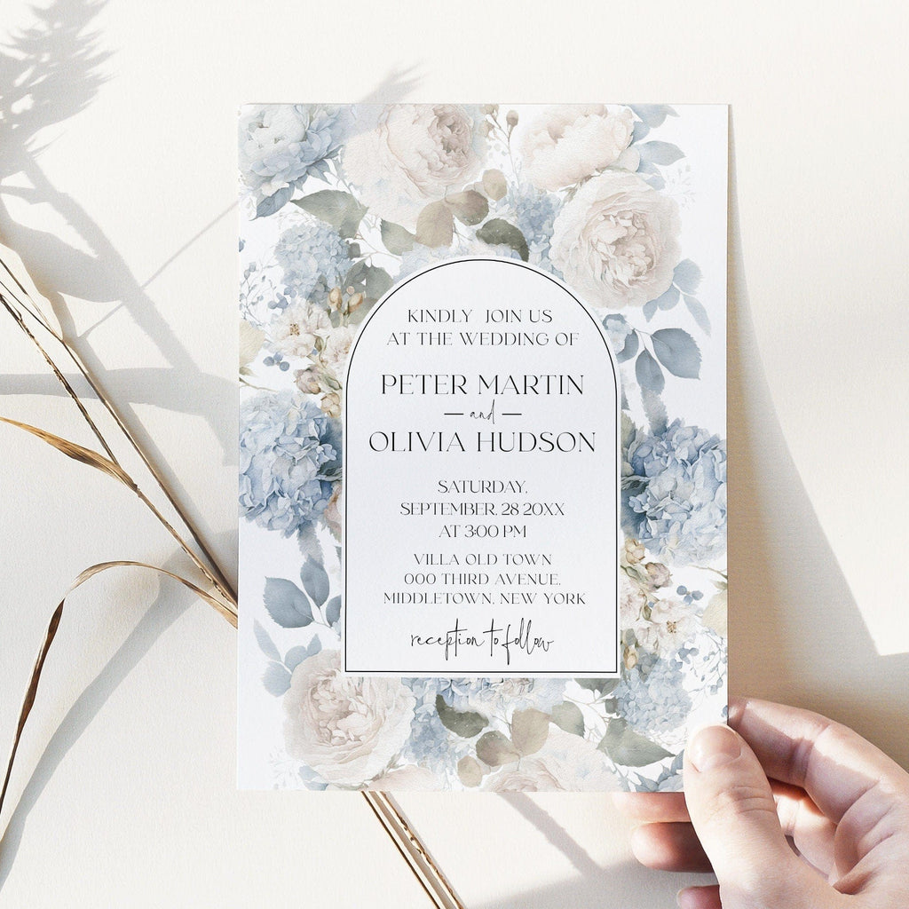 Blue Wedding Invitation Suite | 6 Personalized Printables | Dusty Blue Wedding Inspo