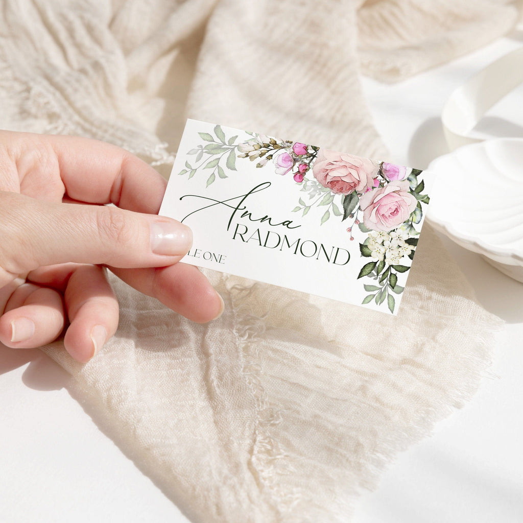 Blush Floral Wedding Seating Cards | 3 Formats Included | Editable Name Tags