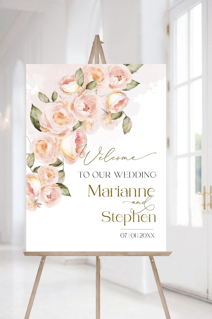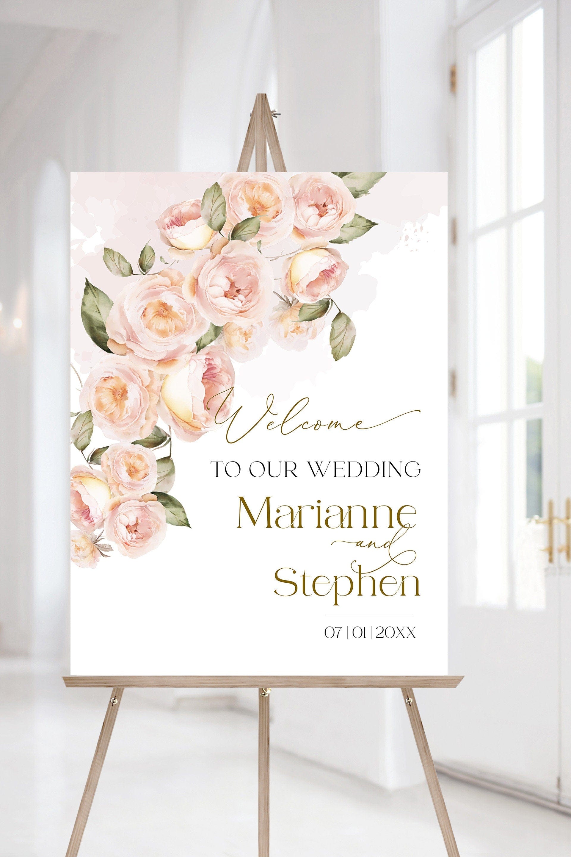 Blush Peach Wedding Welcome Board, EDITABLE Templates