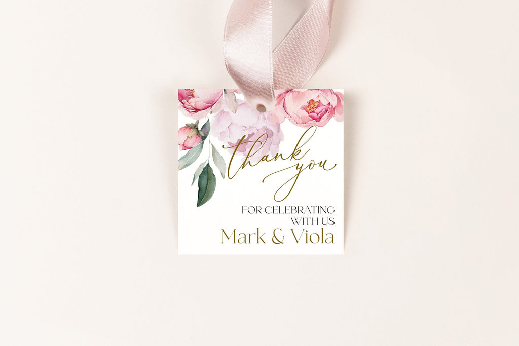 Blush Peony Thank You Tag | Elegant Floral Wedding Favor Tag