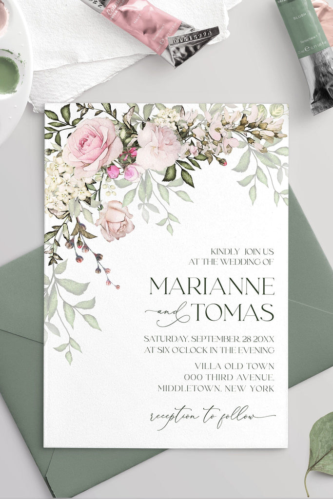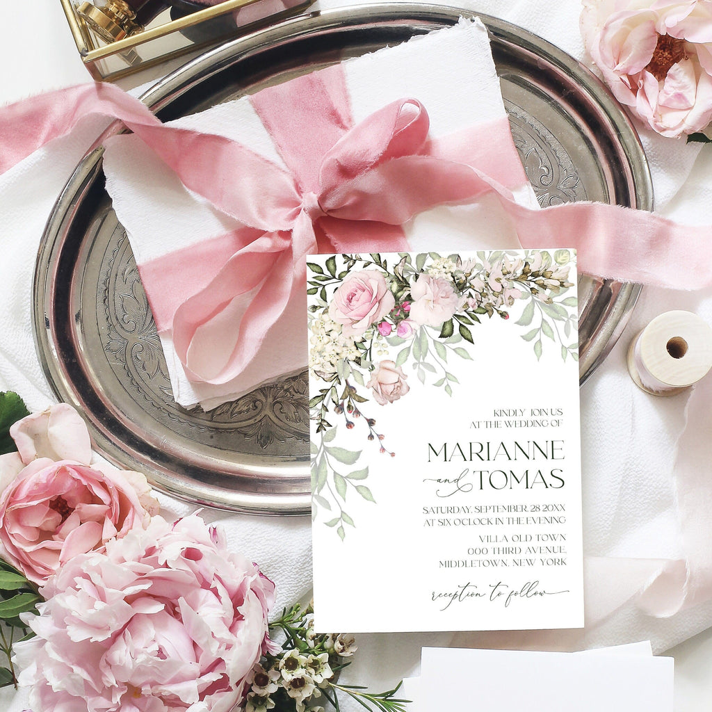Blush Pink Flowers Printable Wedding Invite | Personalized Invitations