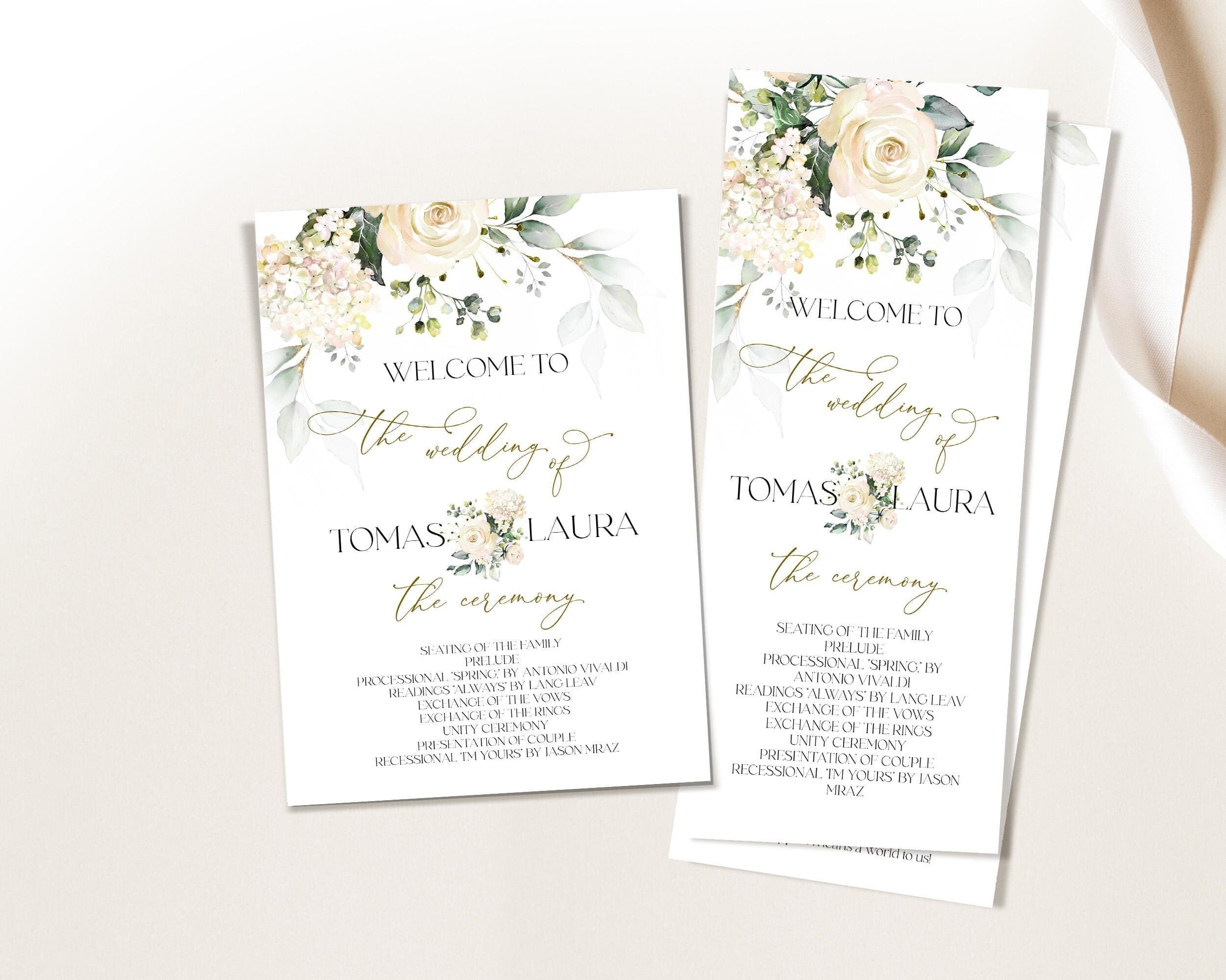- Ceremony Program Cards: 5" x 7", 3.75" x 9"
