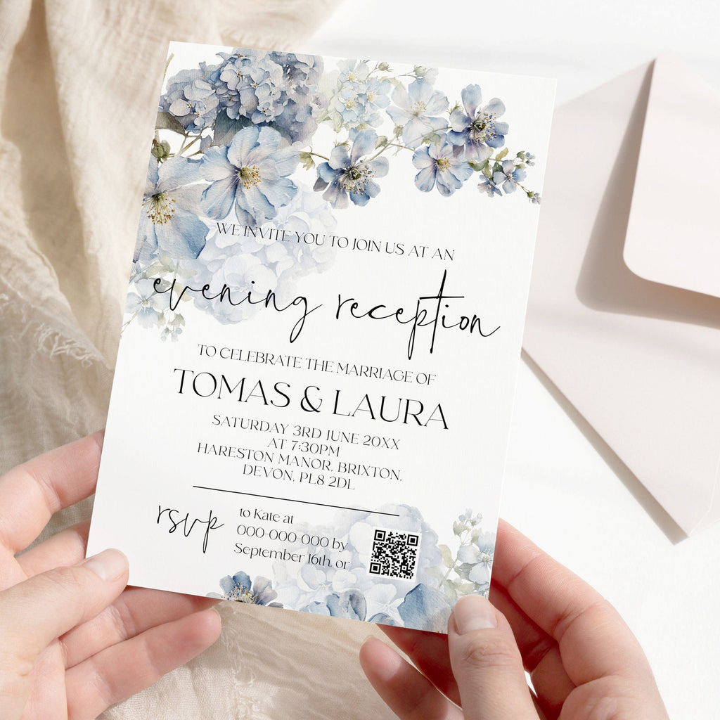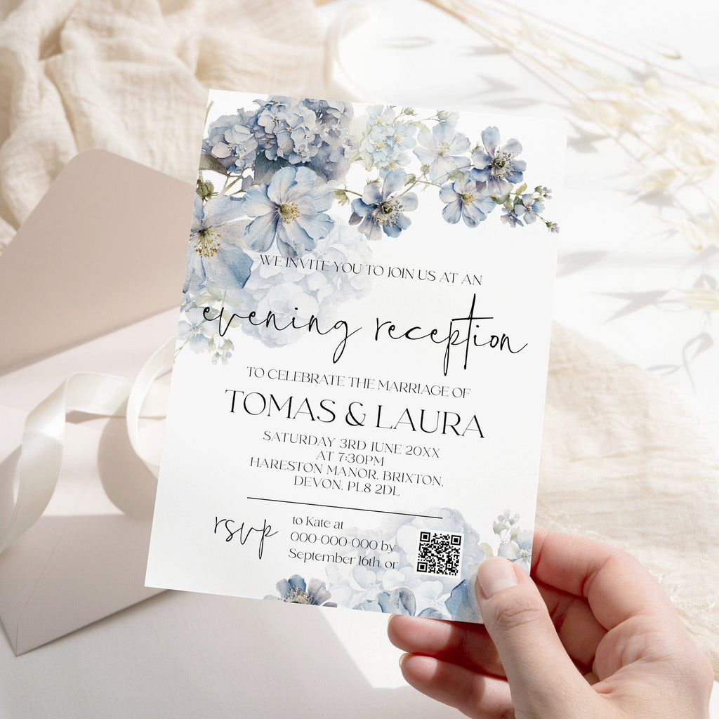 Dusty Blue Evening Reception Invitation | 3 Sizes | Floral Bloom Inspo
