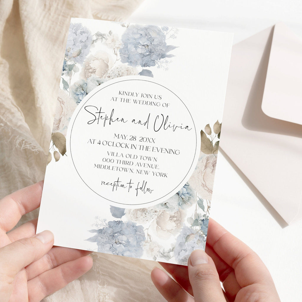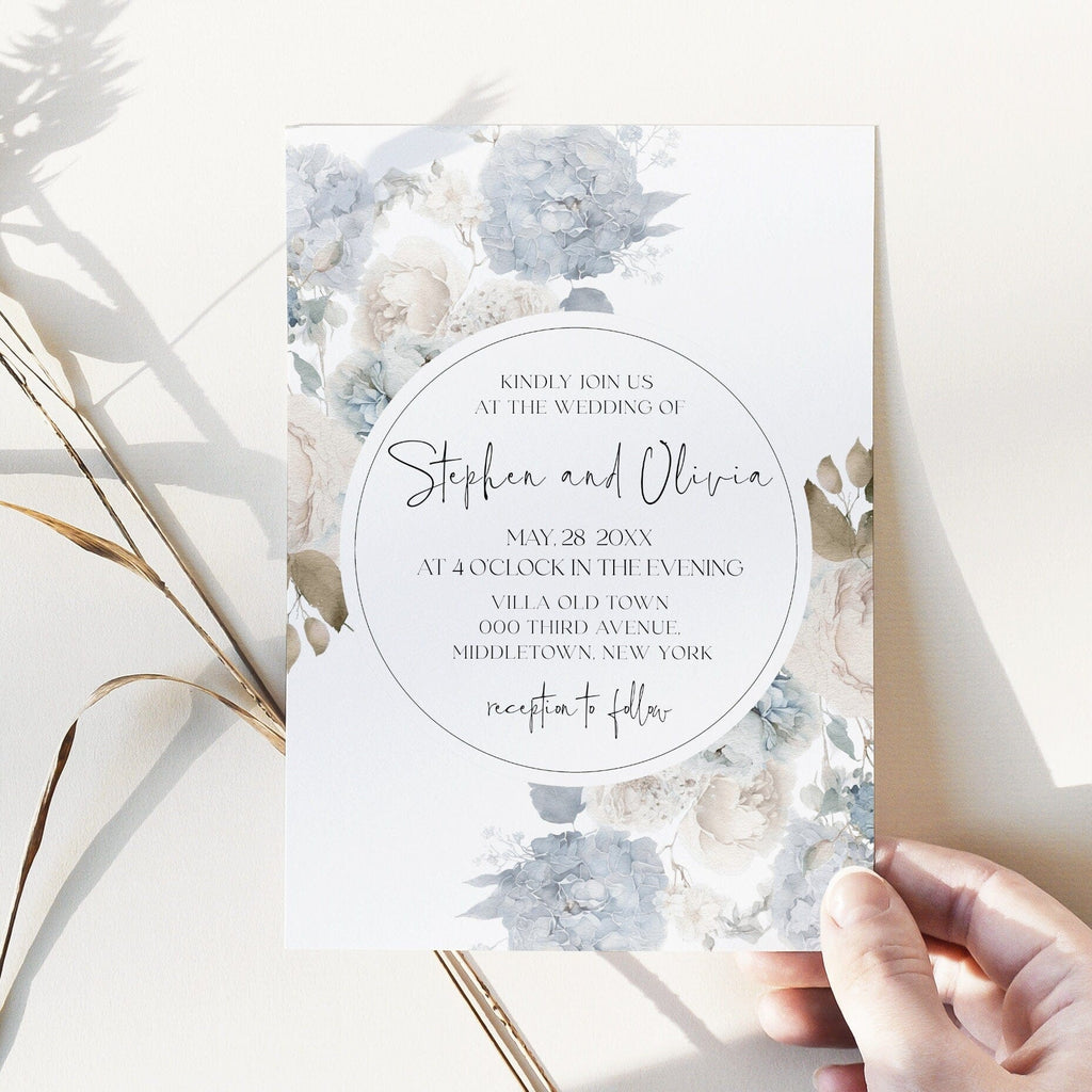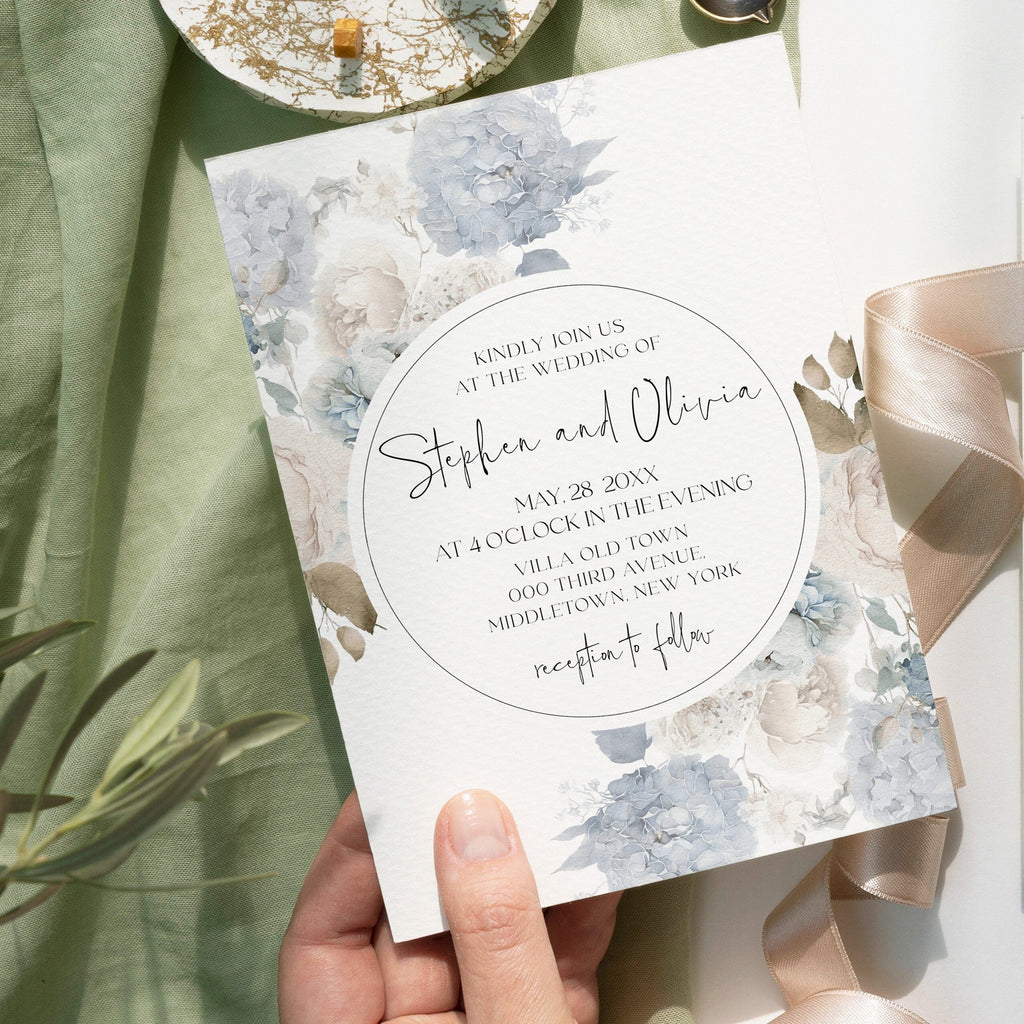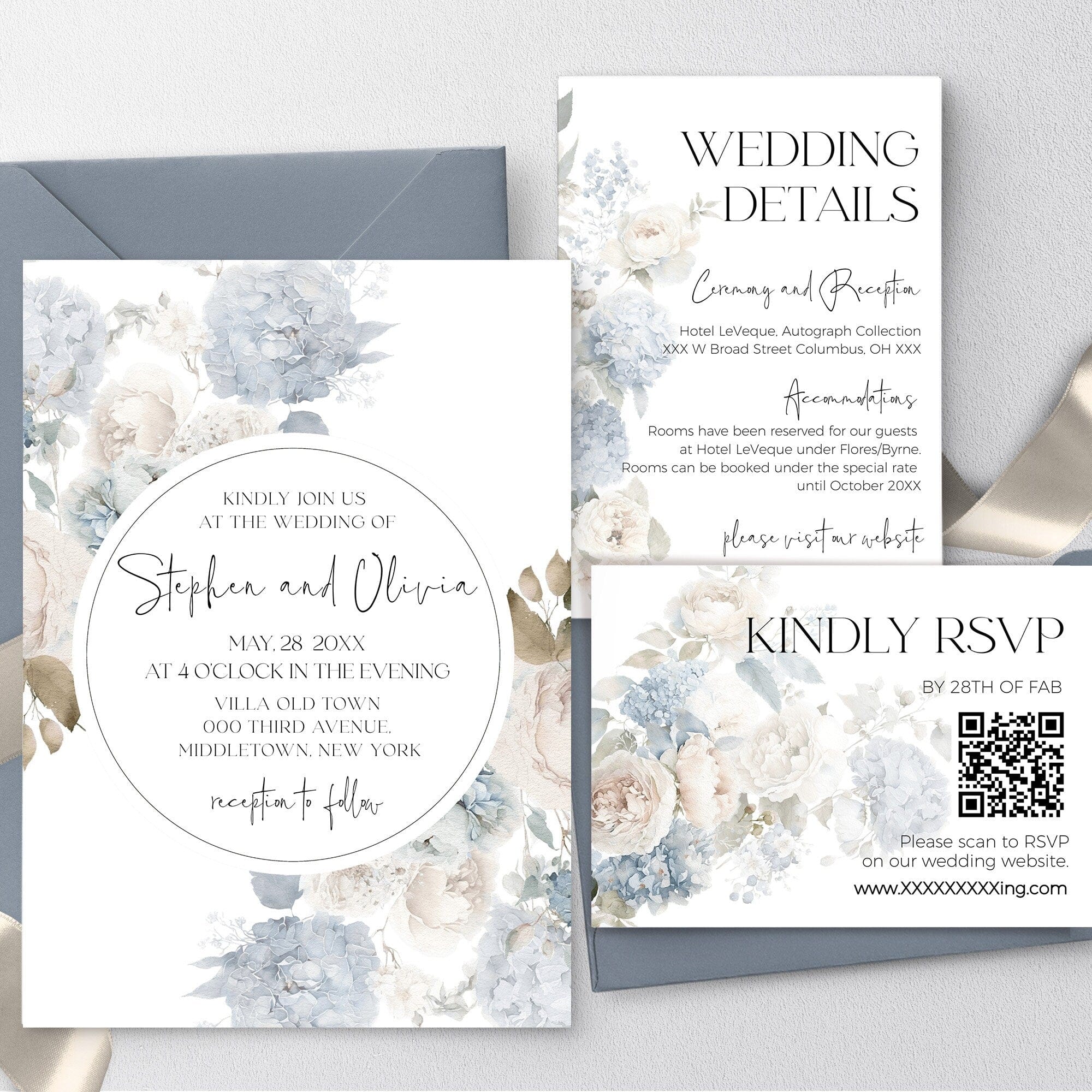 Dusty Blue Floral Wedding Invitation Set, EDITABLE Templates