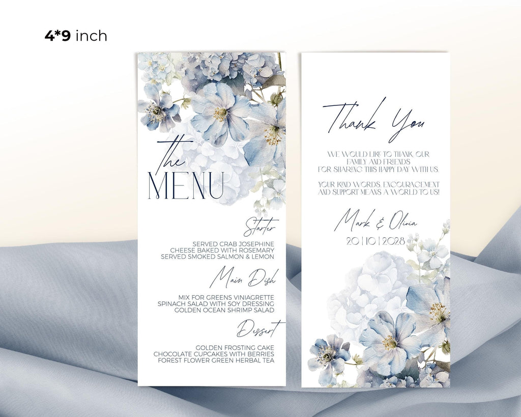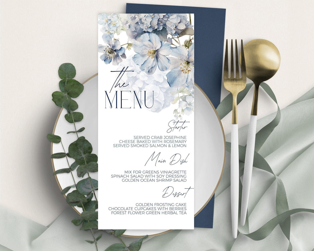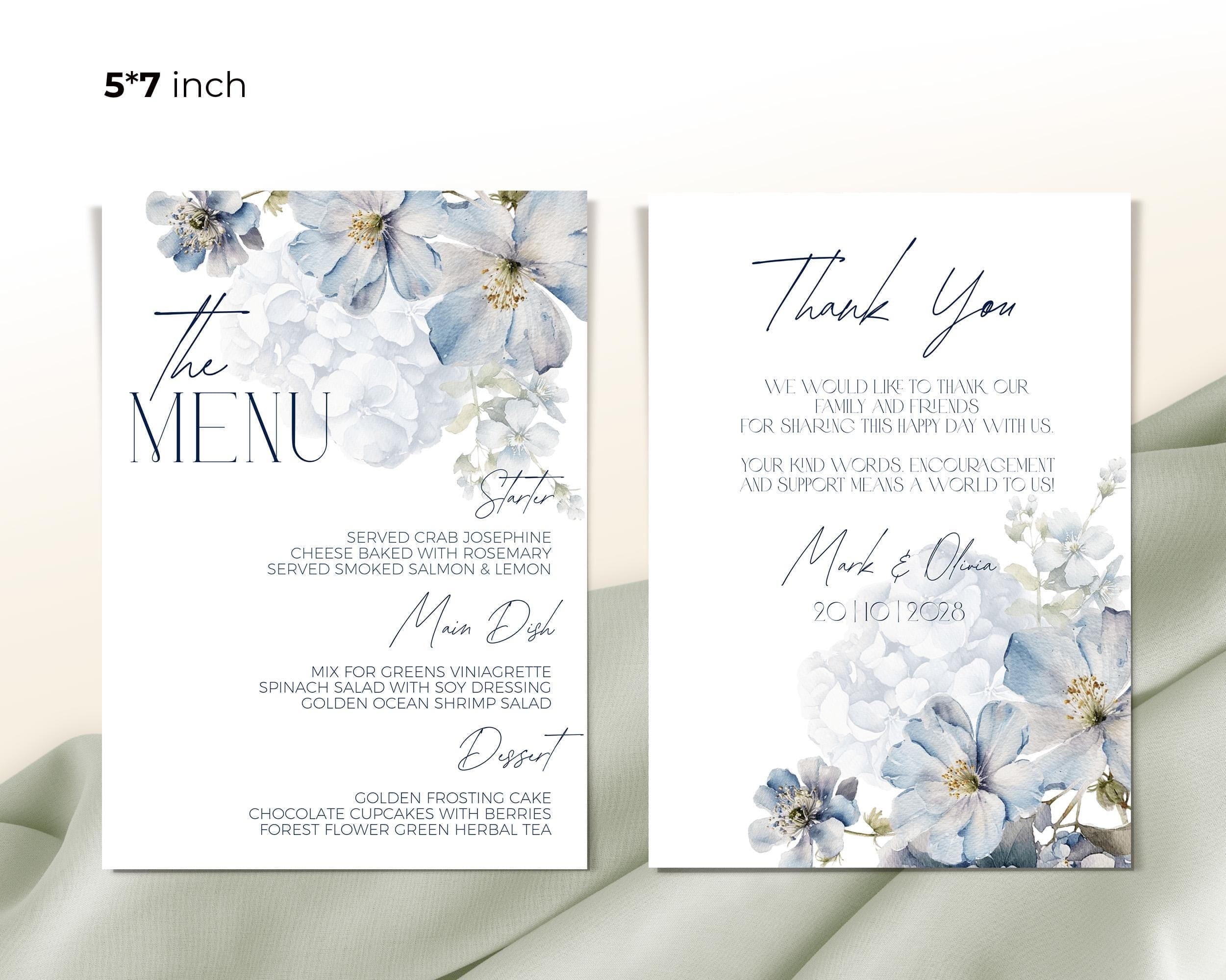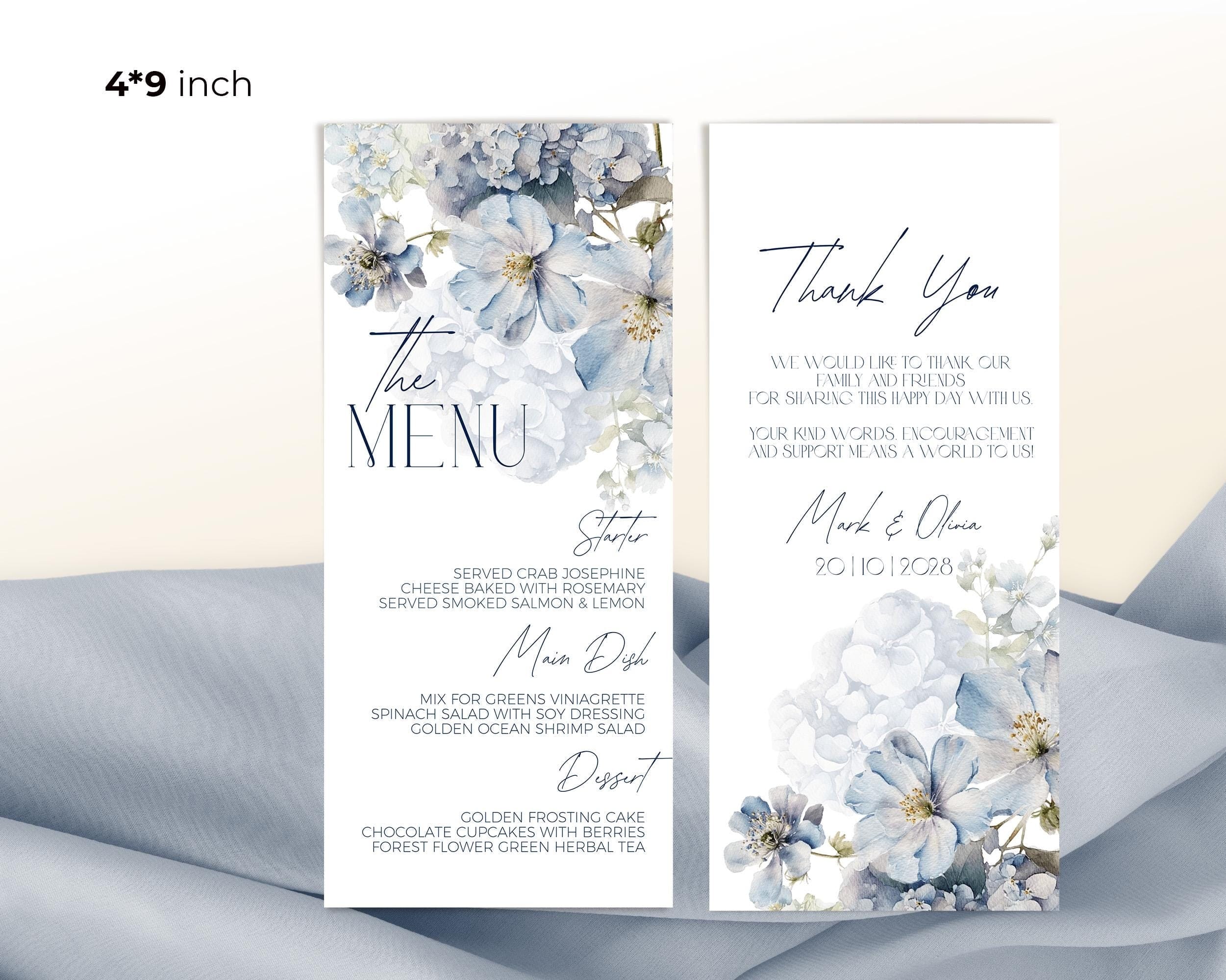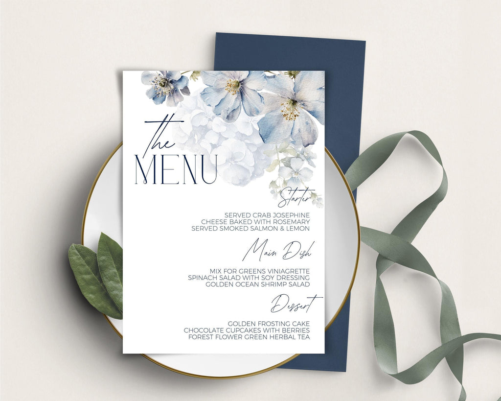Dusty Blue Floral Themed Menu | 2 Sizes | DIY Table Stationery