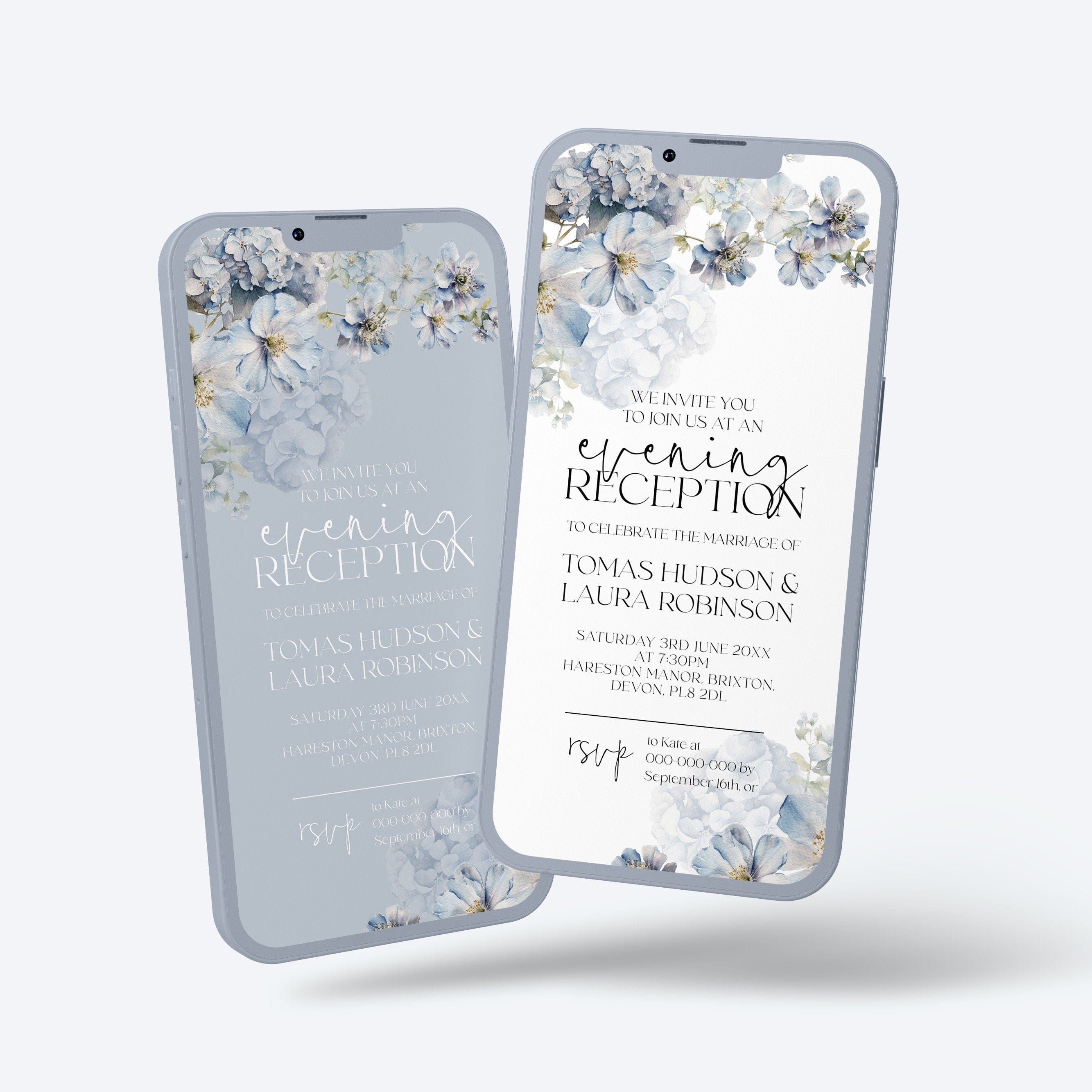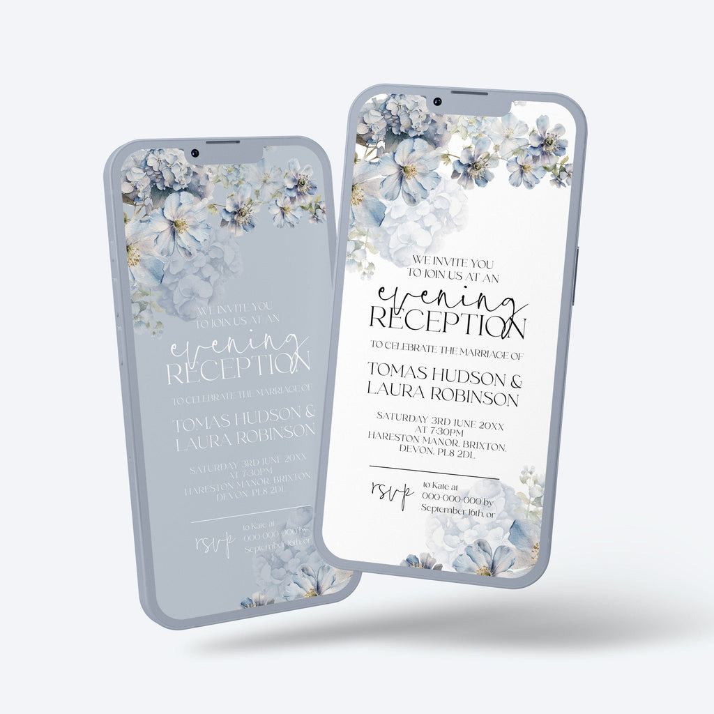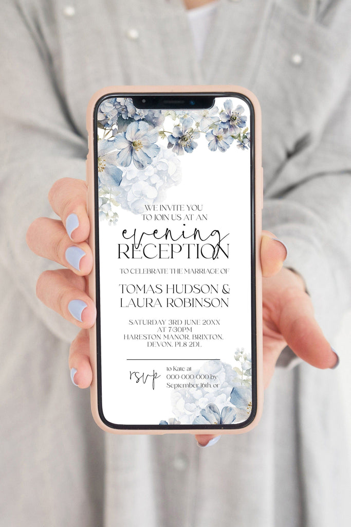 Evening Reception Digital Invitation, Dusty Blue Floral Design, DIY Bride Inspo