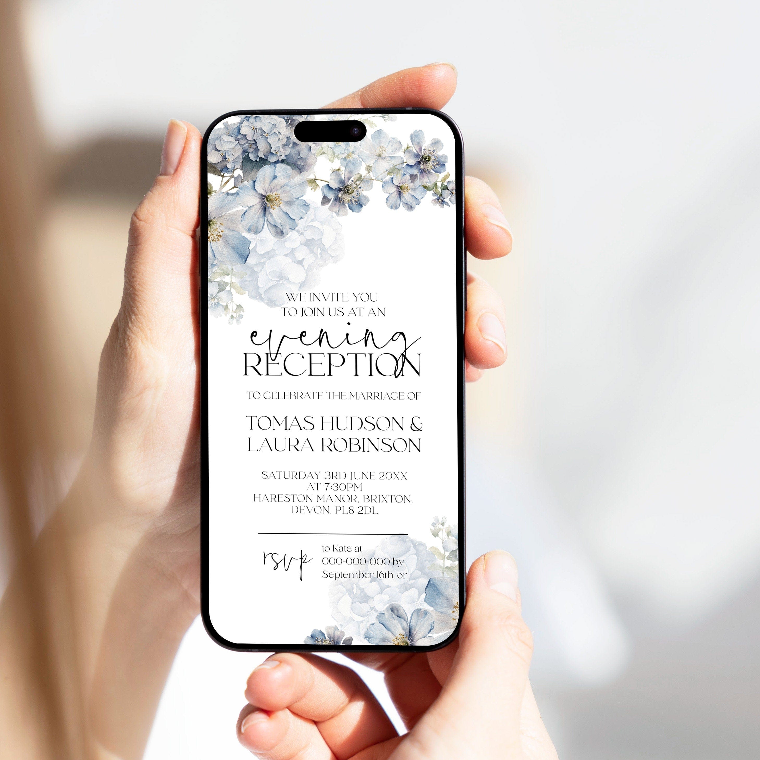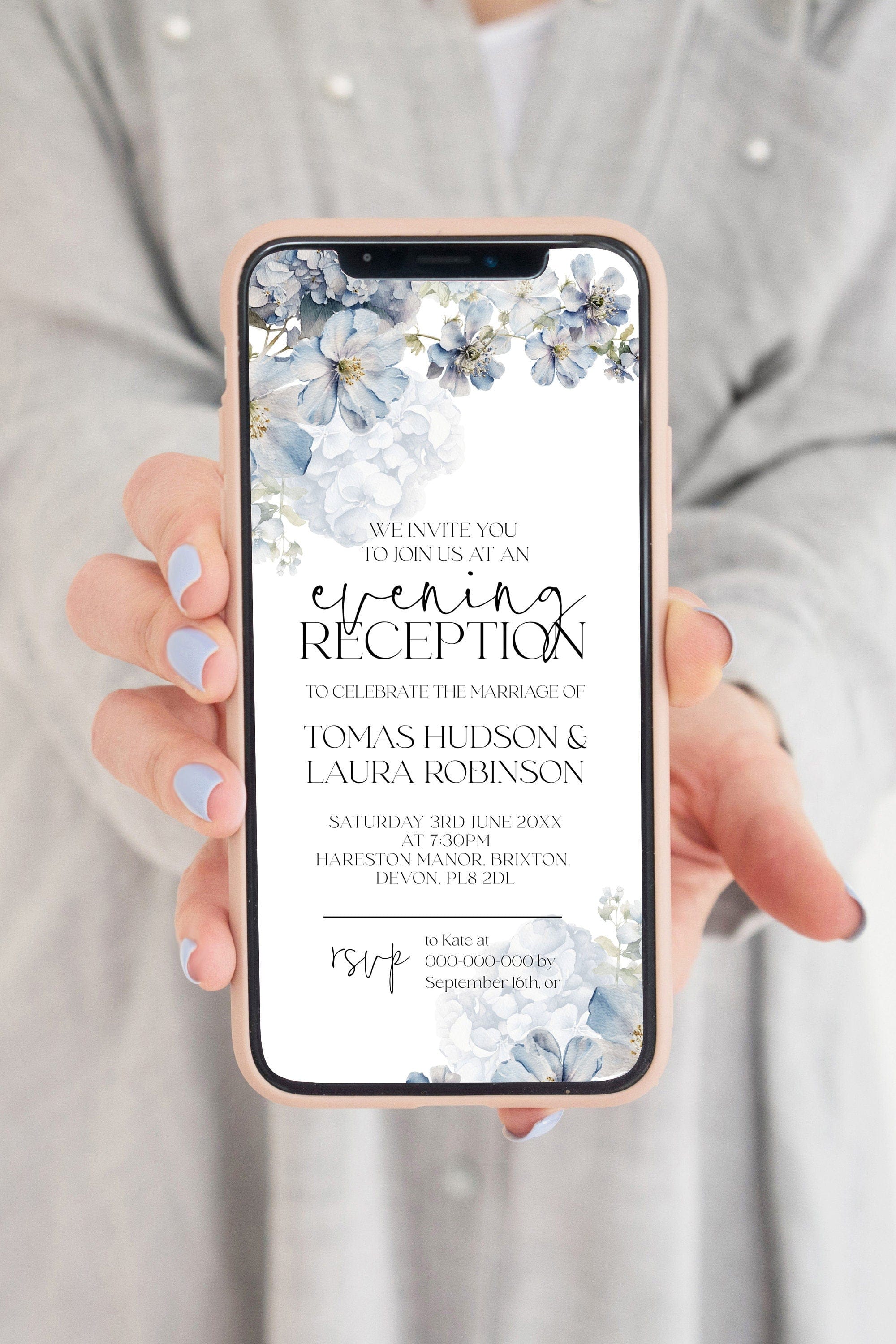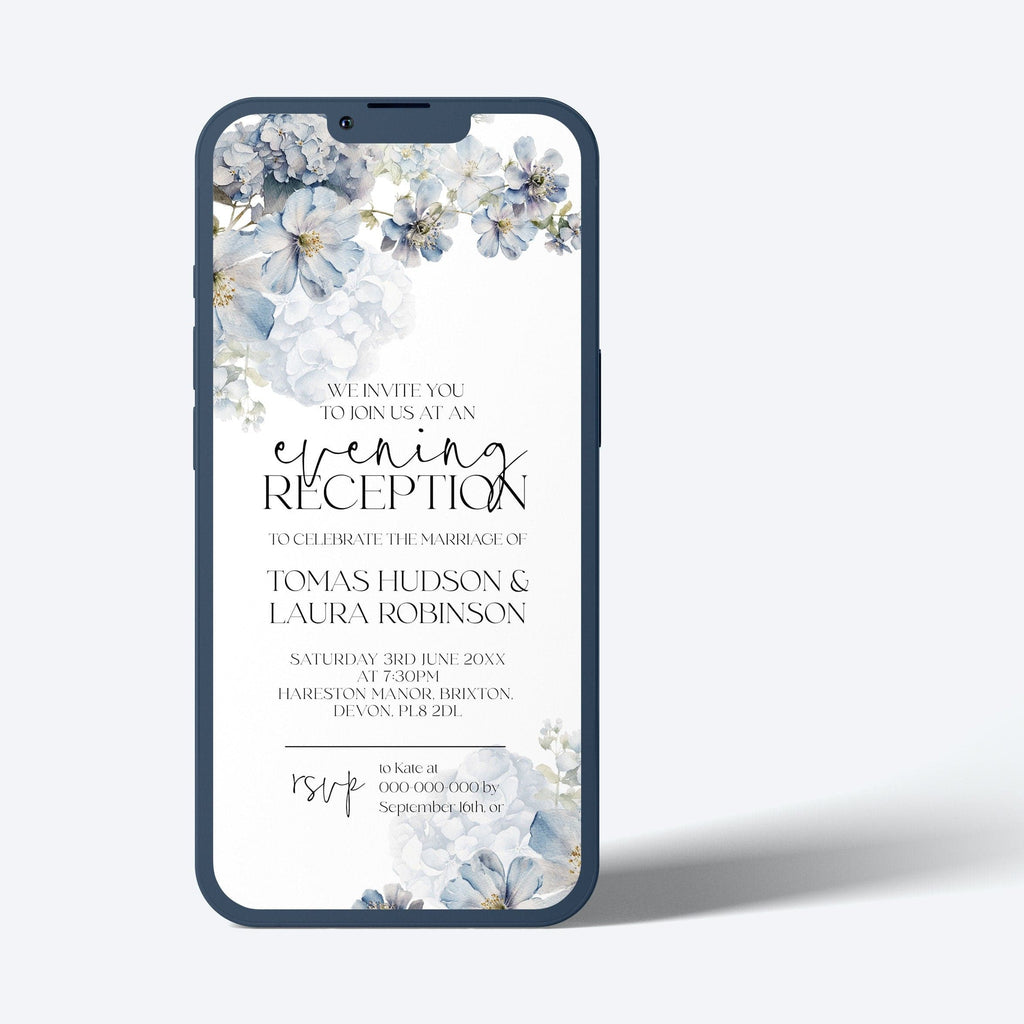 Evening Reception Digital Invitation, Dusty Blue Floral Design, DIY Bride Inspo
