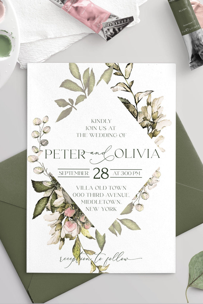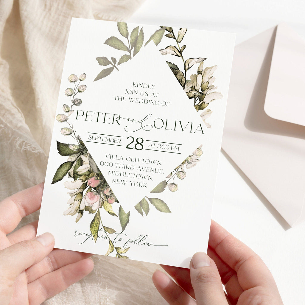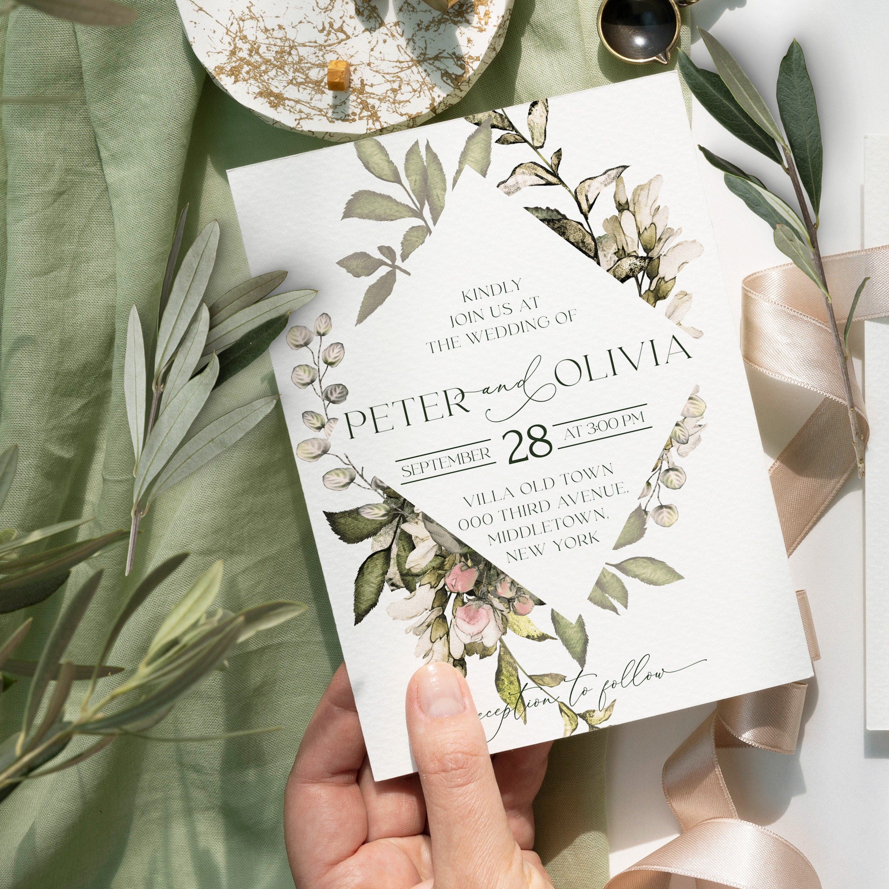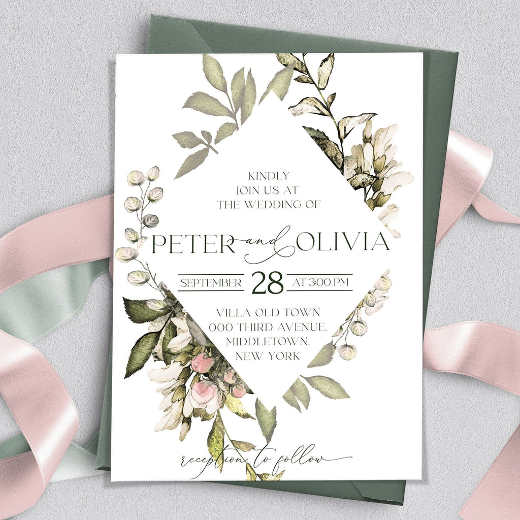 Floral Wedding Invitation Template | Soft Pink Flowers Printable Wedding Invite