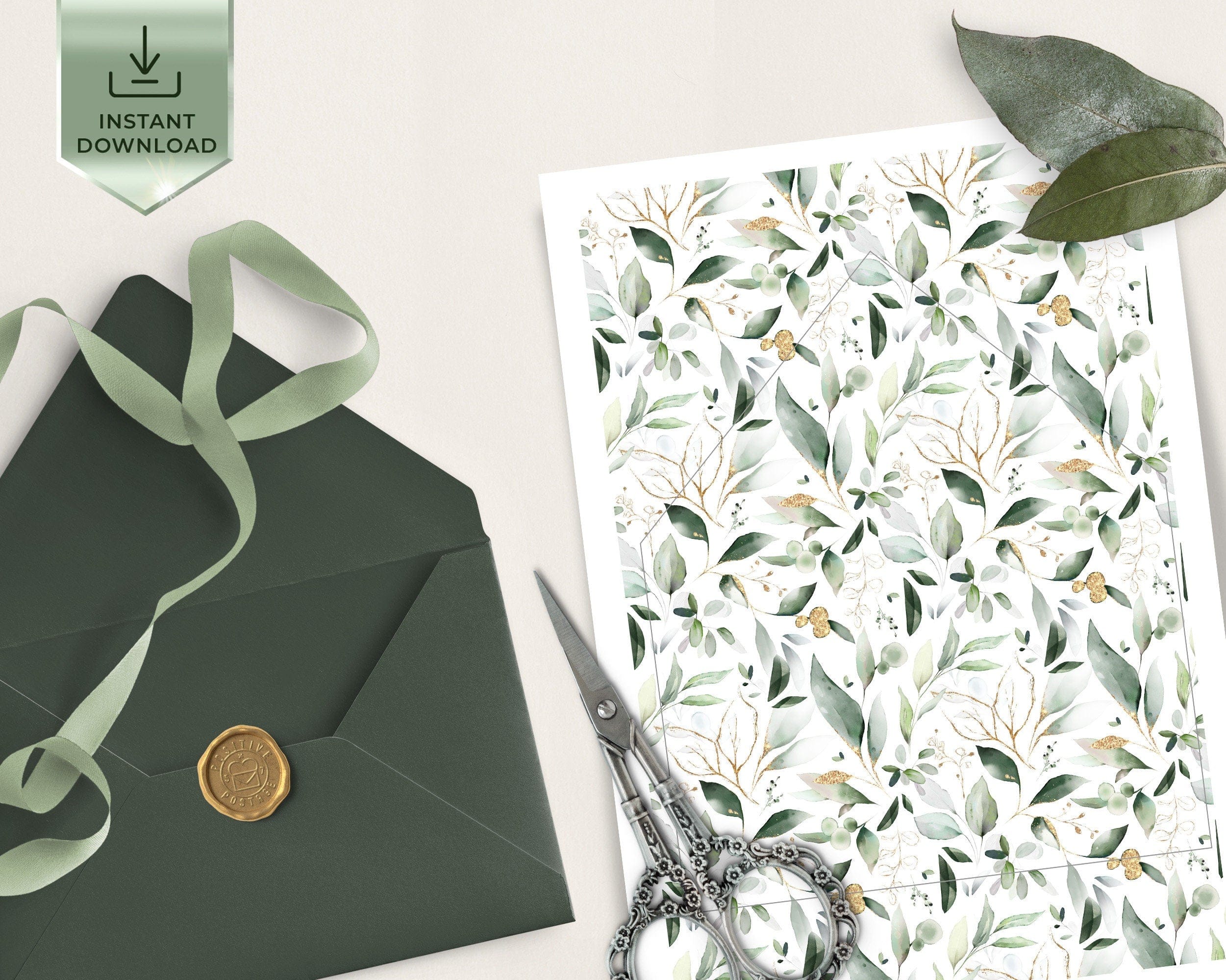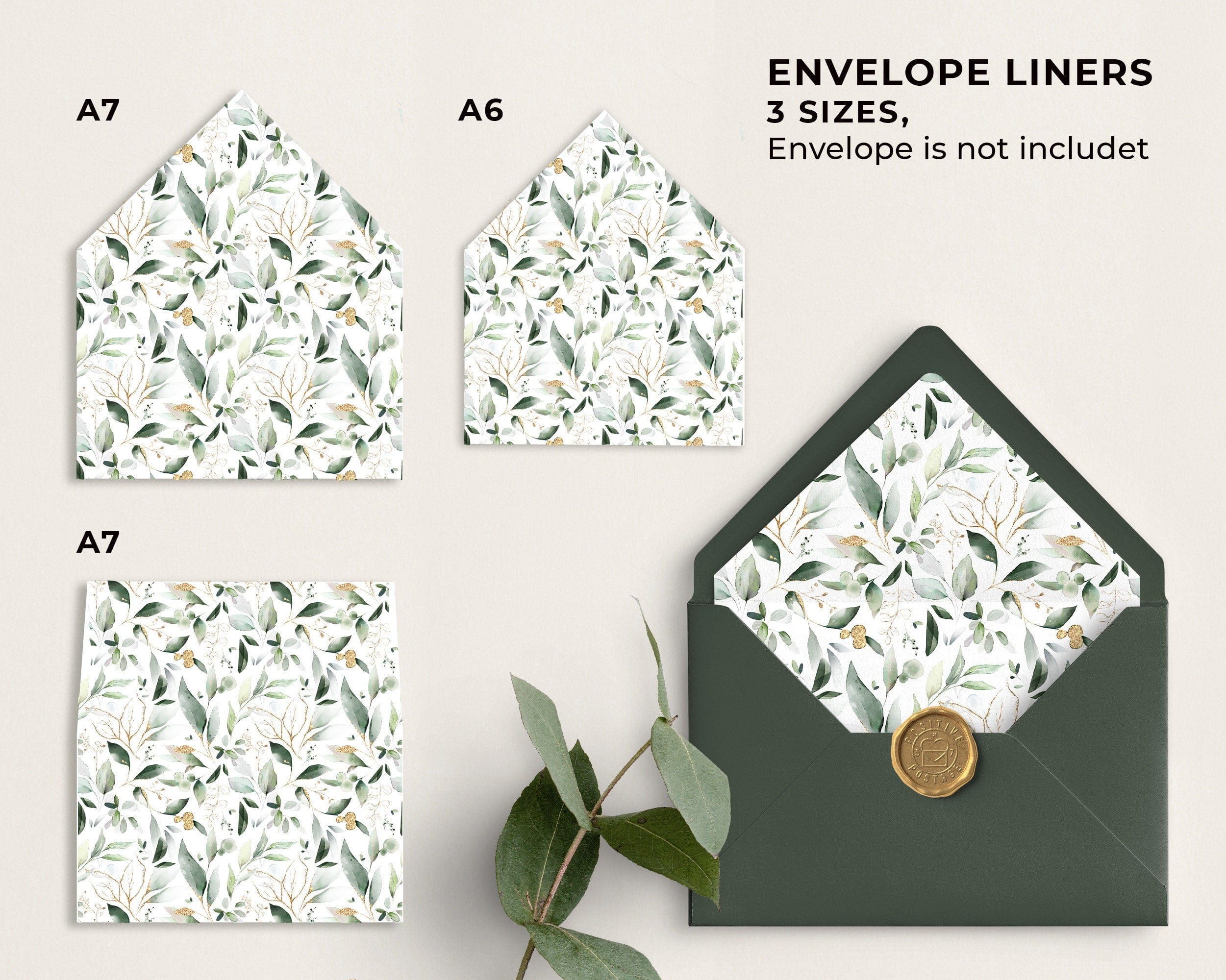Printable Greenery Envelope Liners A7 A6 Set with Gold Accents | 3 Sizes Included