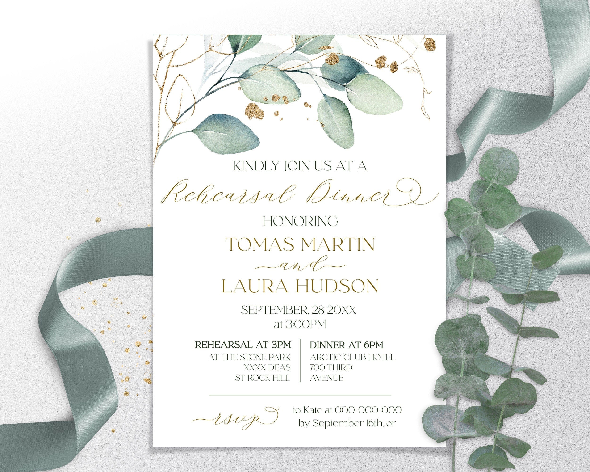 Green & Gold Rehearsal Dinner Invitation, EDITABLE Templates