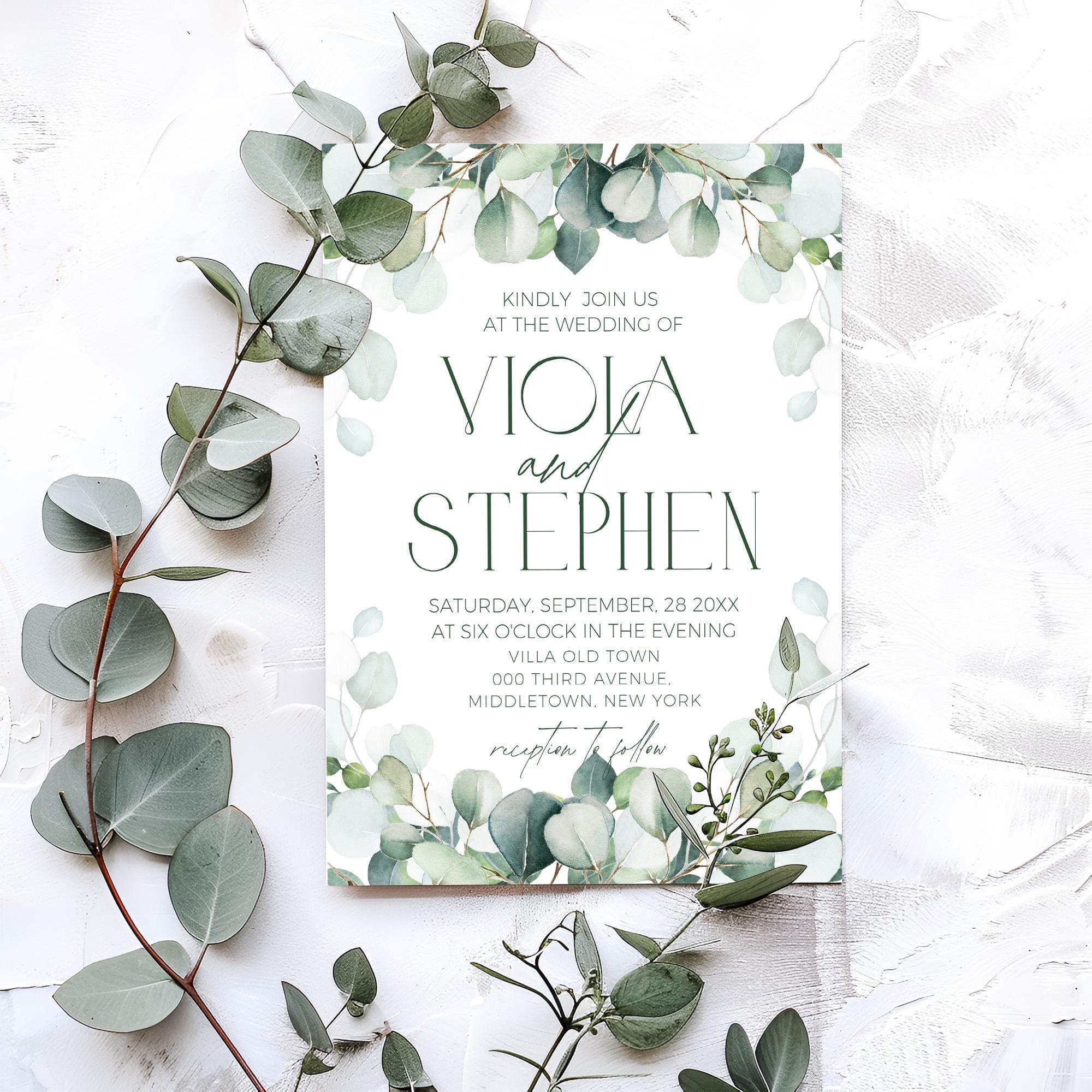Greenery Eucalyptus Wedding Invitations, EDITABLE Templates