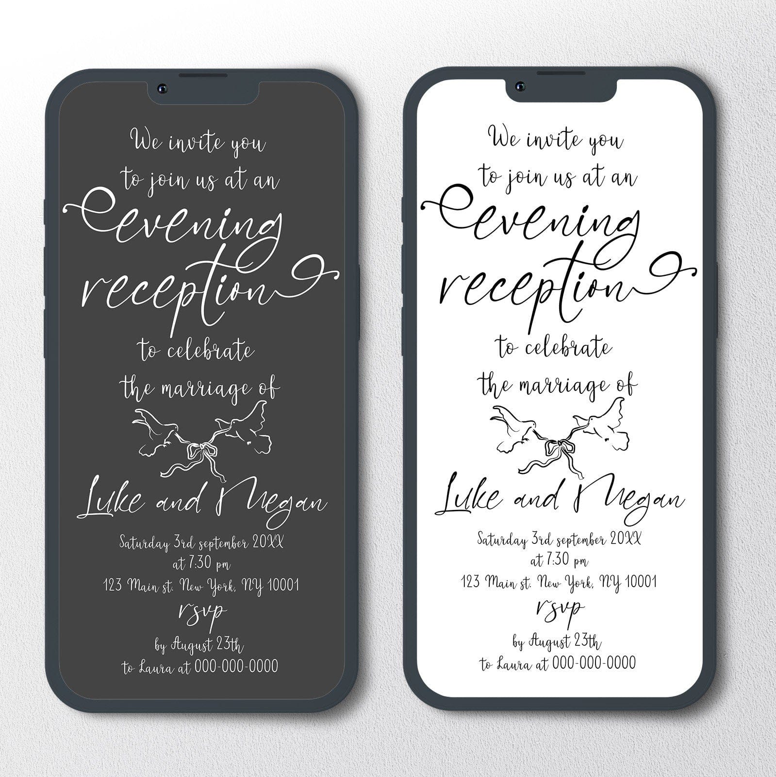 Evening Reception Phone Invitation | Minimal Black & White Script