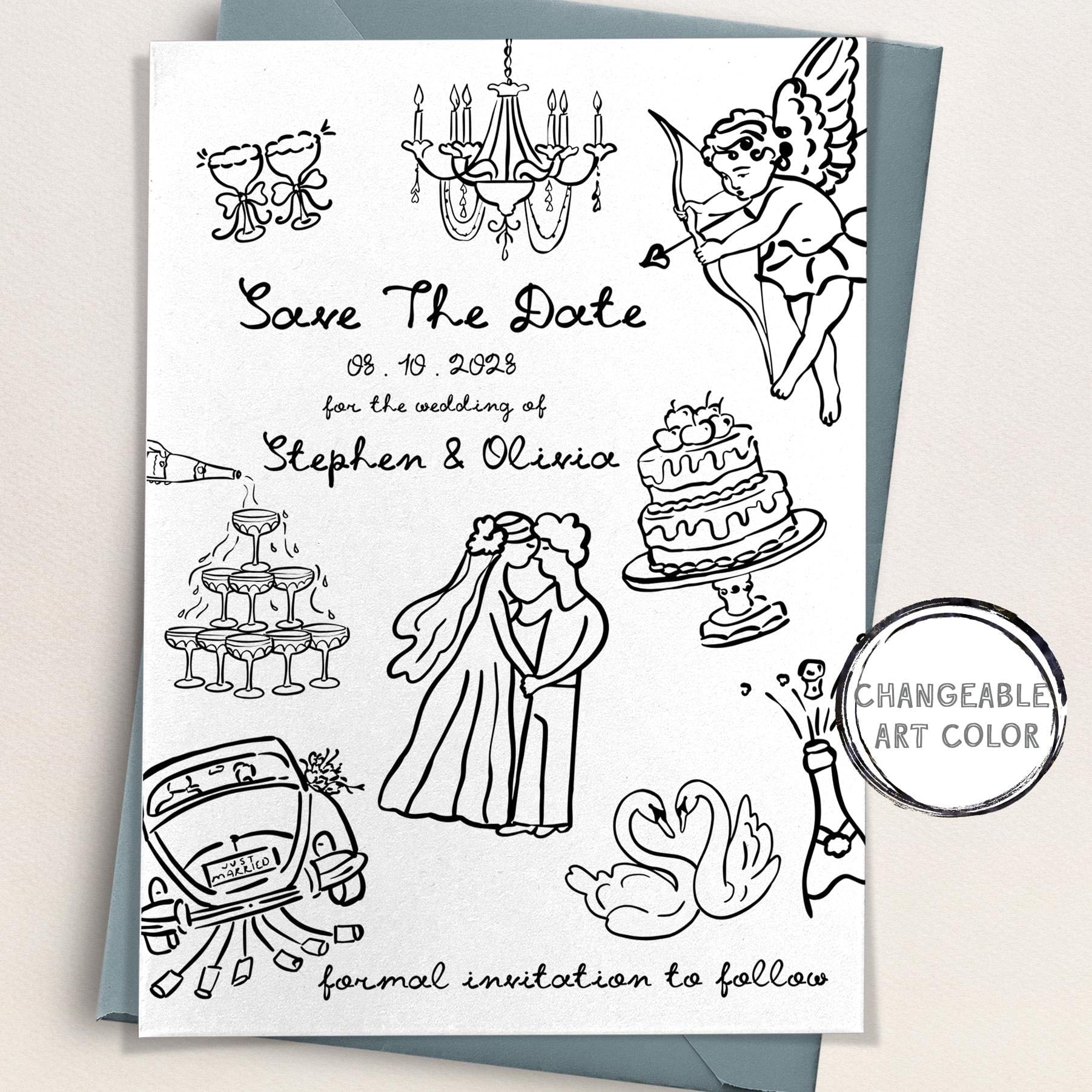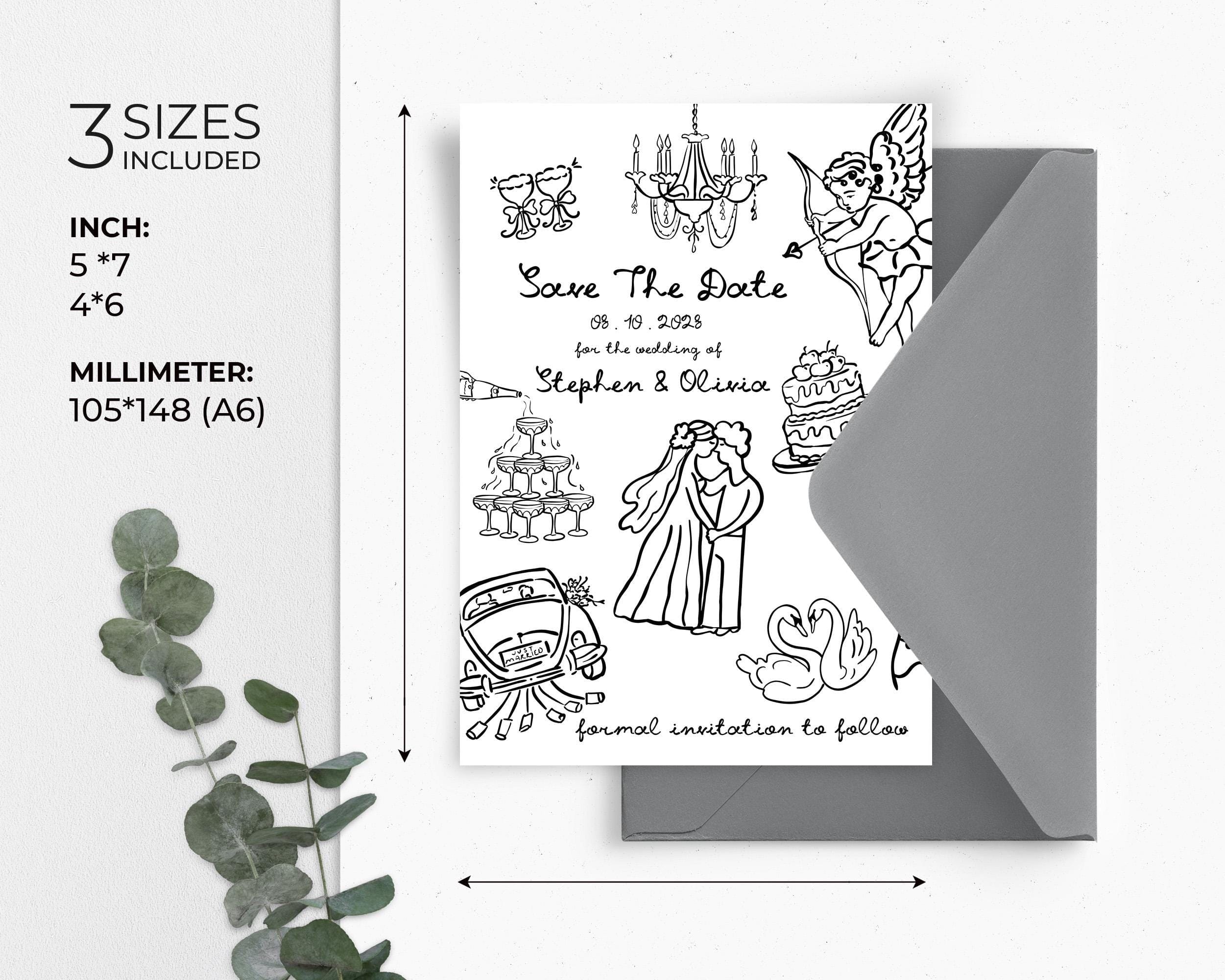 Hand Drawn Save the Date Cards | 3 Sizes | Scribble Illustrated Invitations