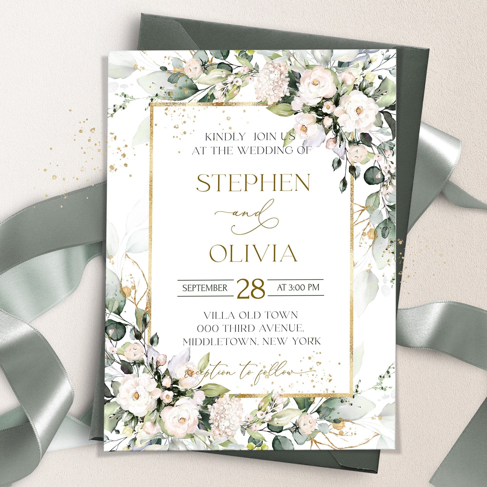 Ivory and Eucalyptus Wedding Invitation | 3 Sizes | Creamy White Floral Printables