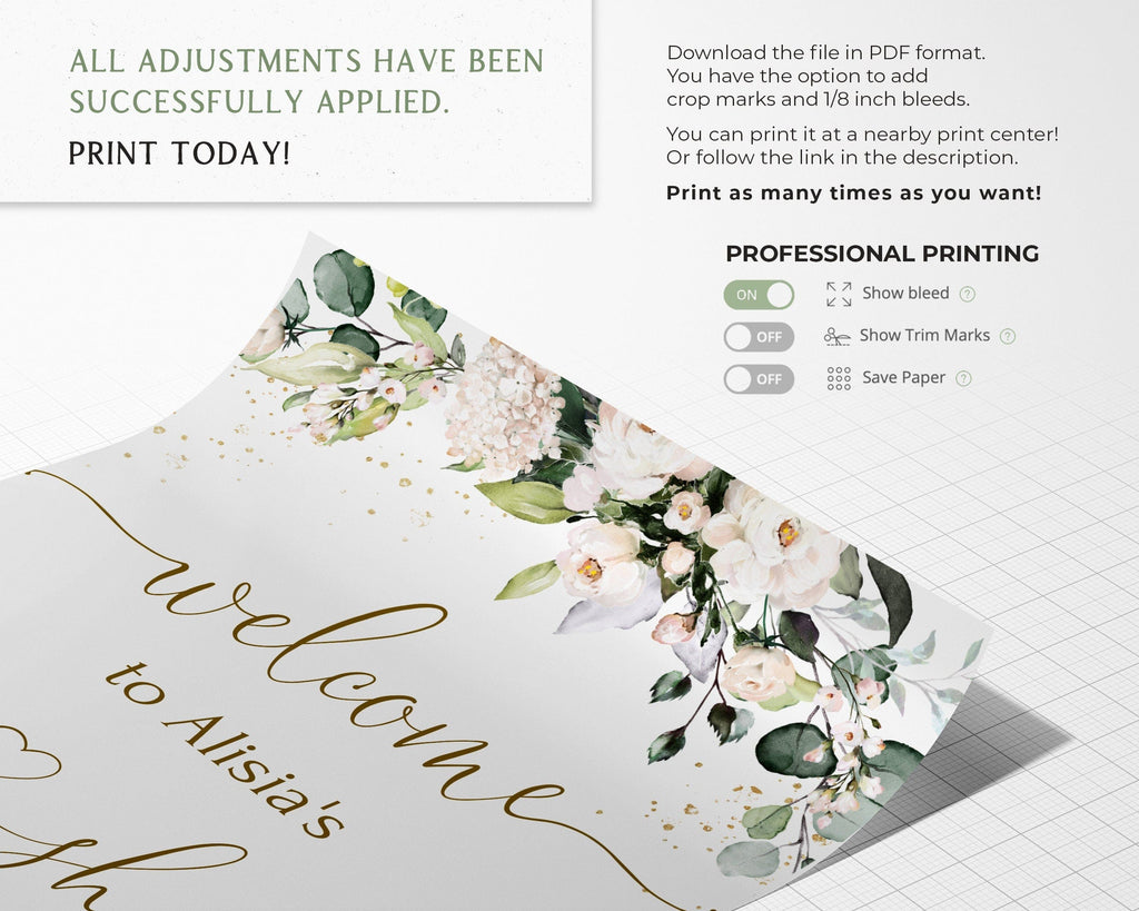 Ivory Baby Shower Welcome Sign | 5 Sizes | White Floral Poster Download