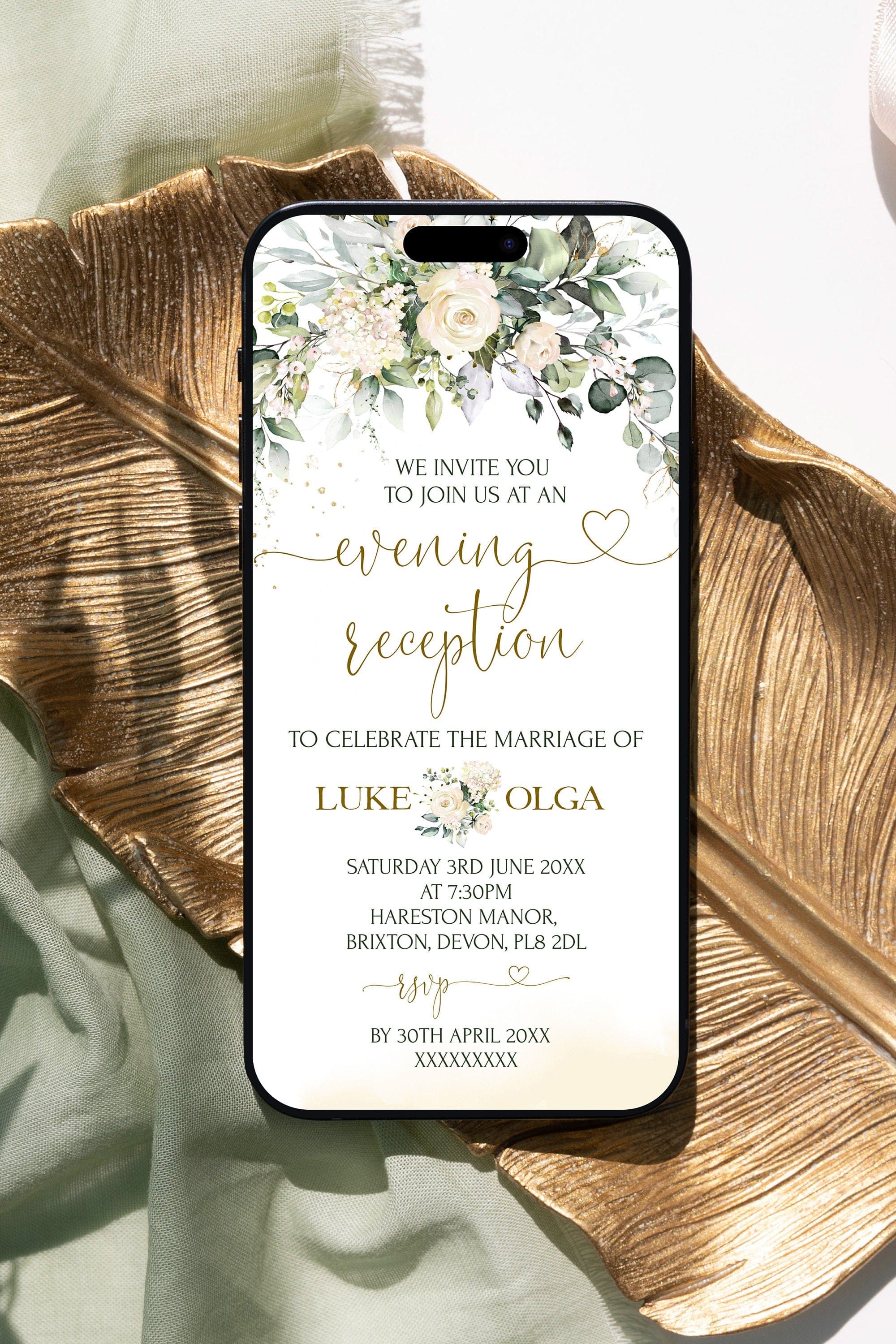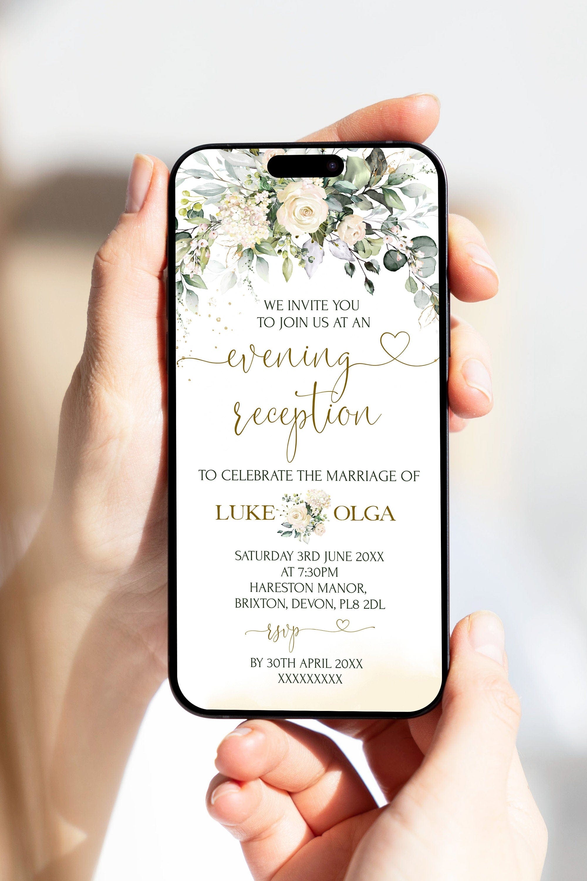 Ivory Evening Reception Digital Invite, EDITABLE Templates