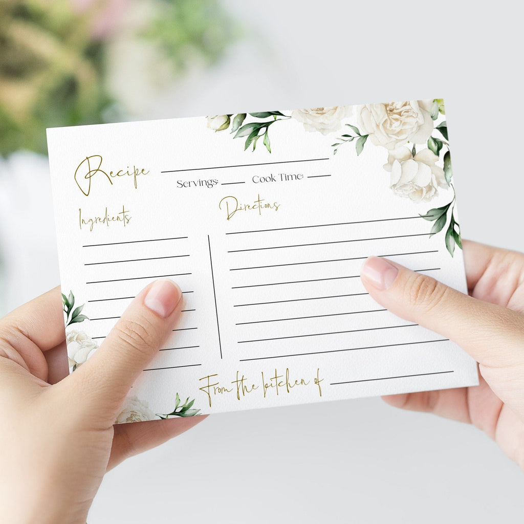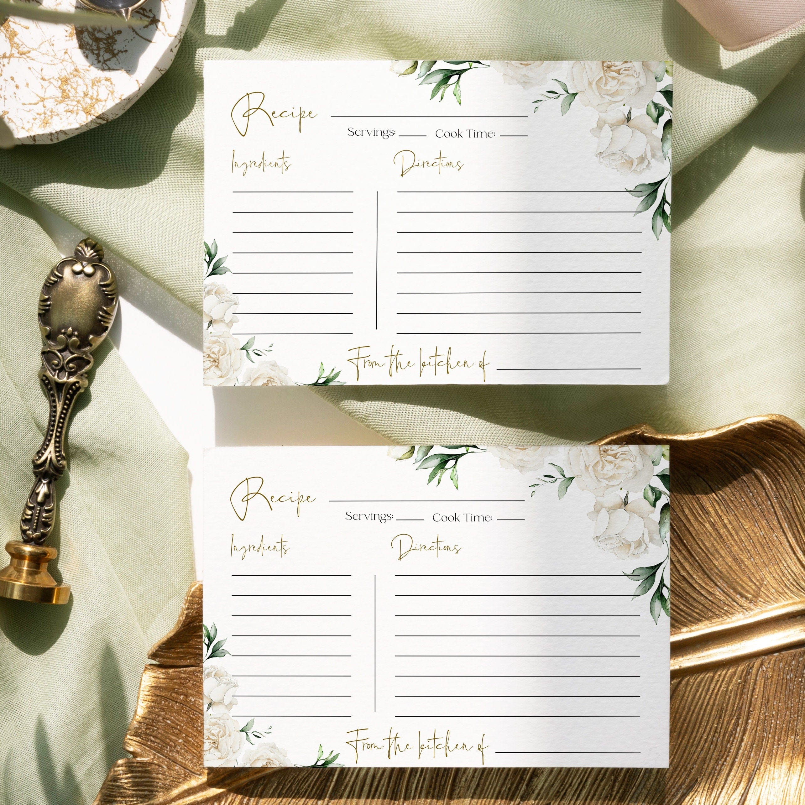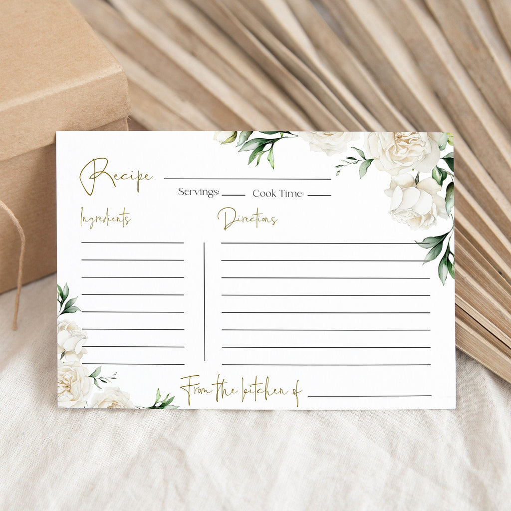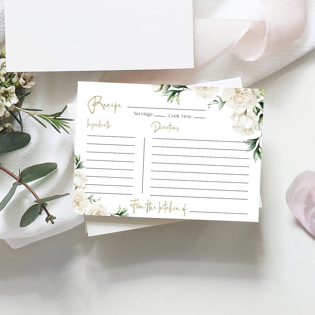 Ivory Floral Recipe Card | 2 Sizes | Editable Printable Card