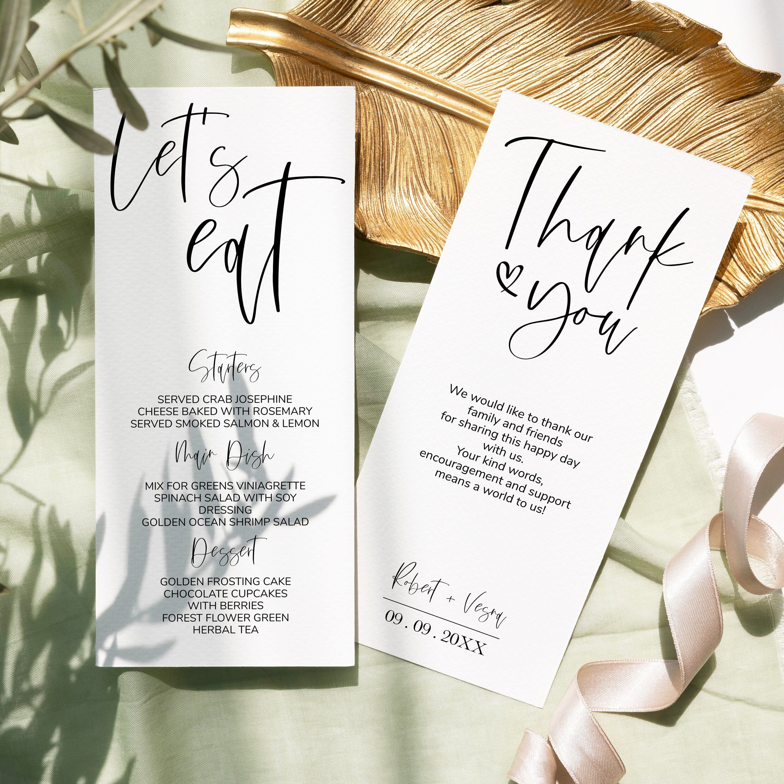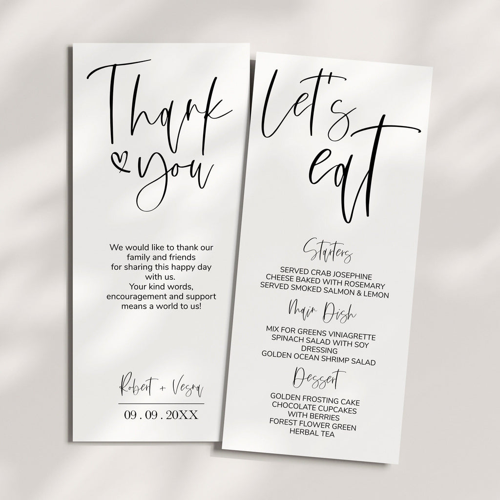 Modern Menu Cards | 2 Sizes | Minimalist Wedding Table Stationery