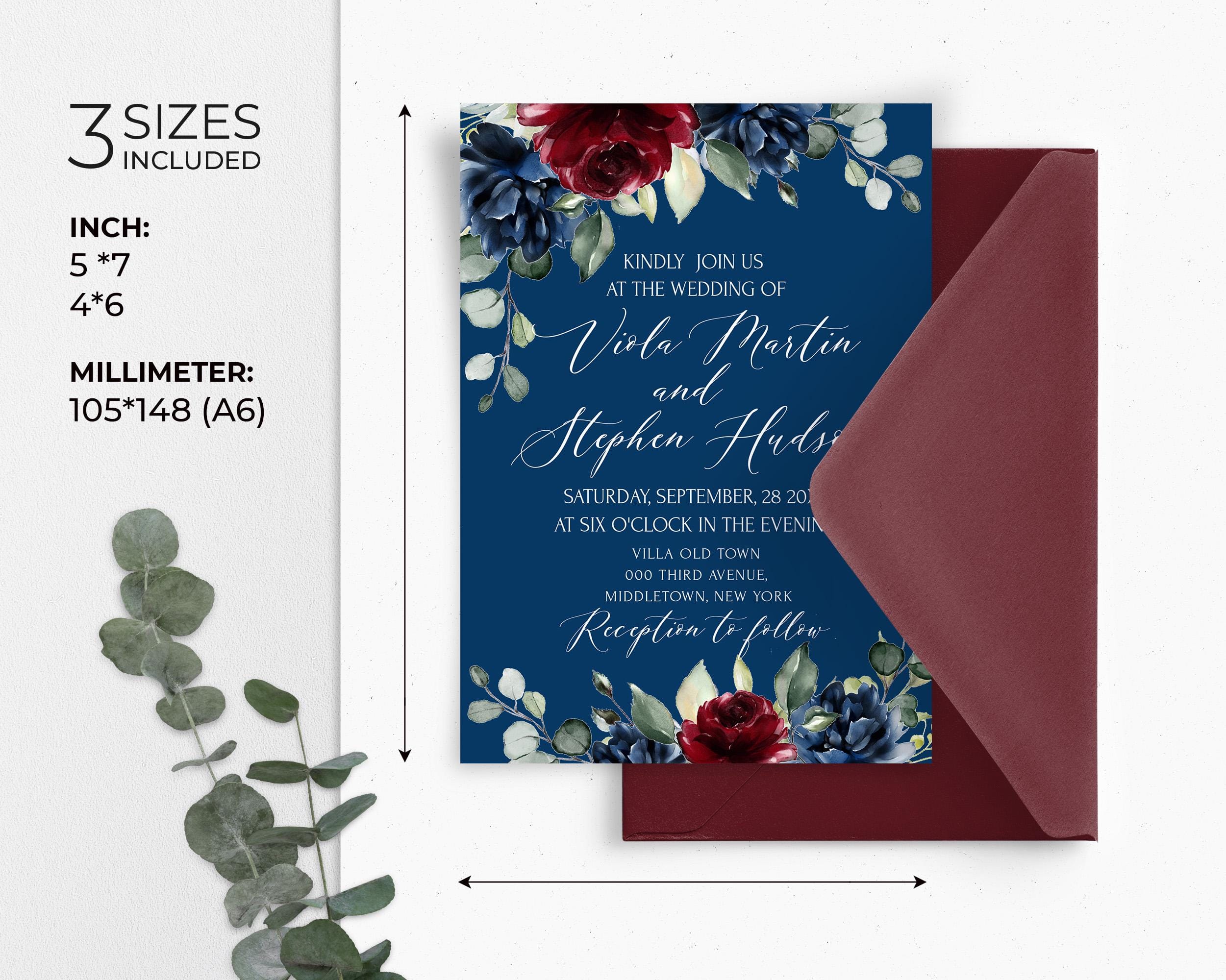 Romantic Burgundy & Navy Floral Invitation | 3 Sizes | DIY Bride Inspo