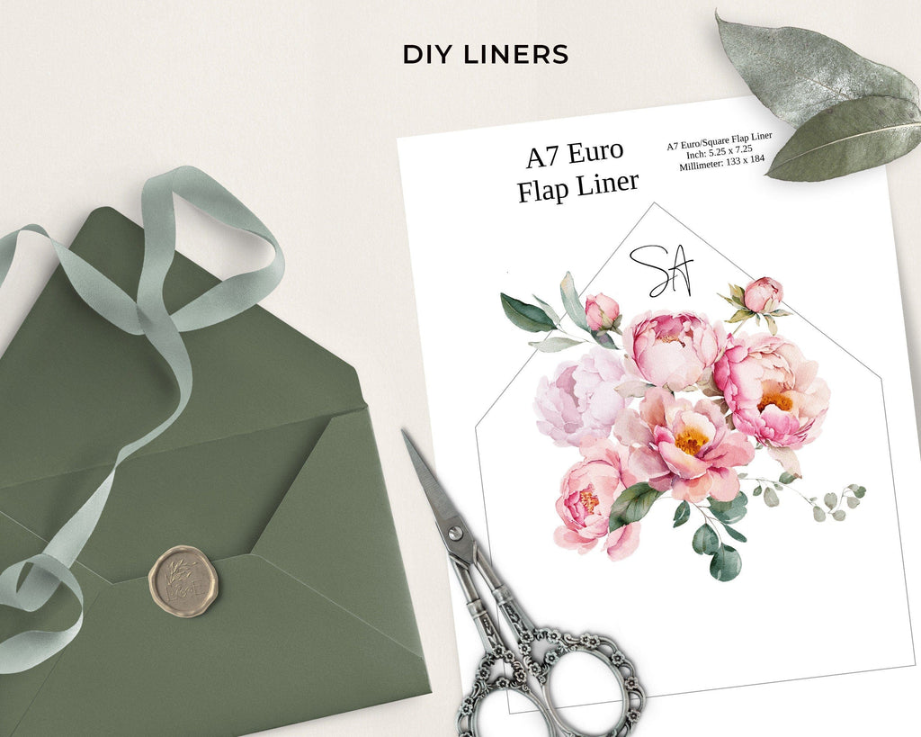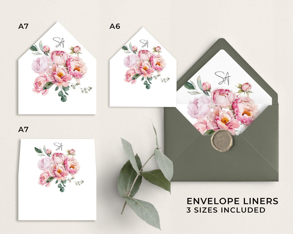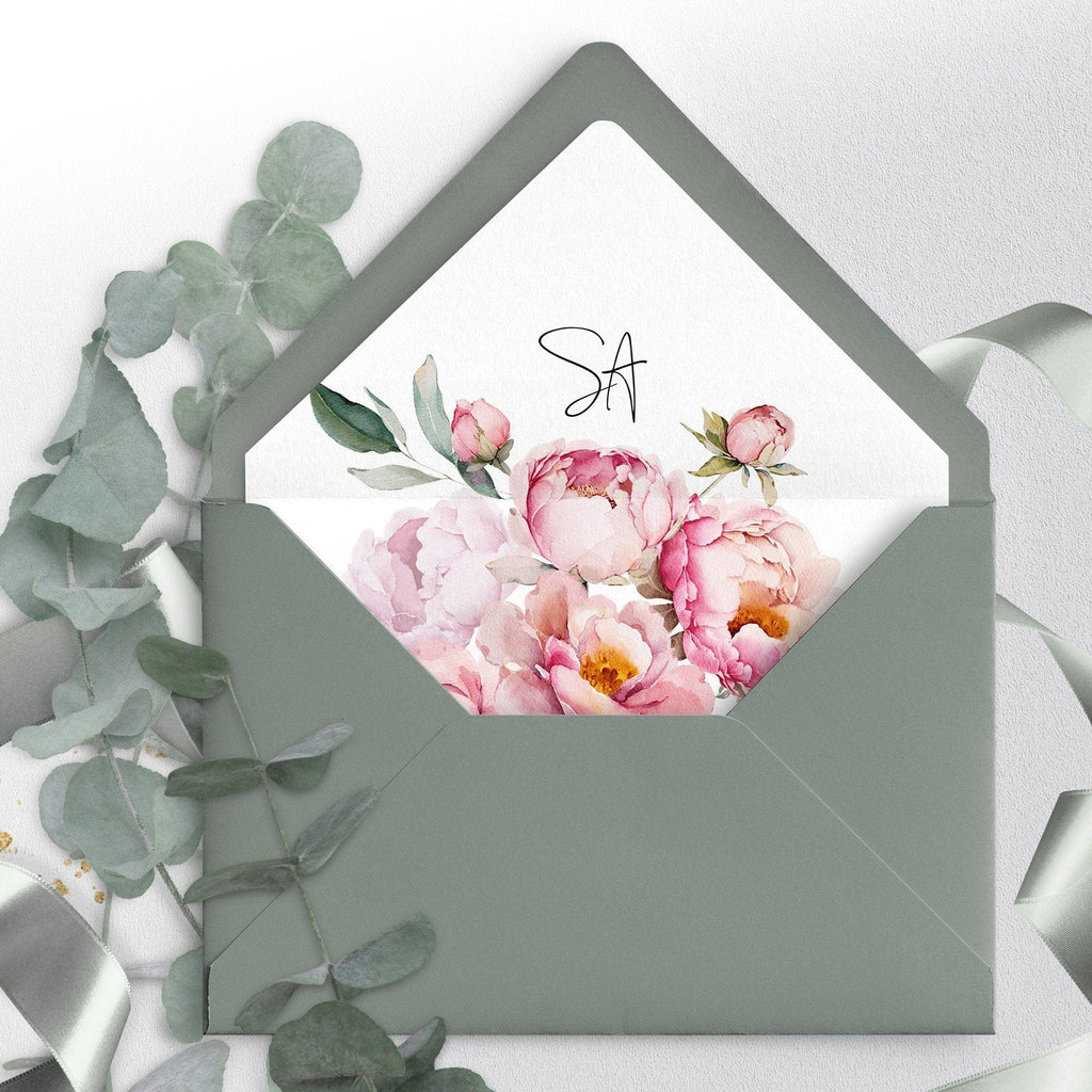 Peony Themed Envelope Liners | 3 Sizes | Personalized Printables with Floral Design