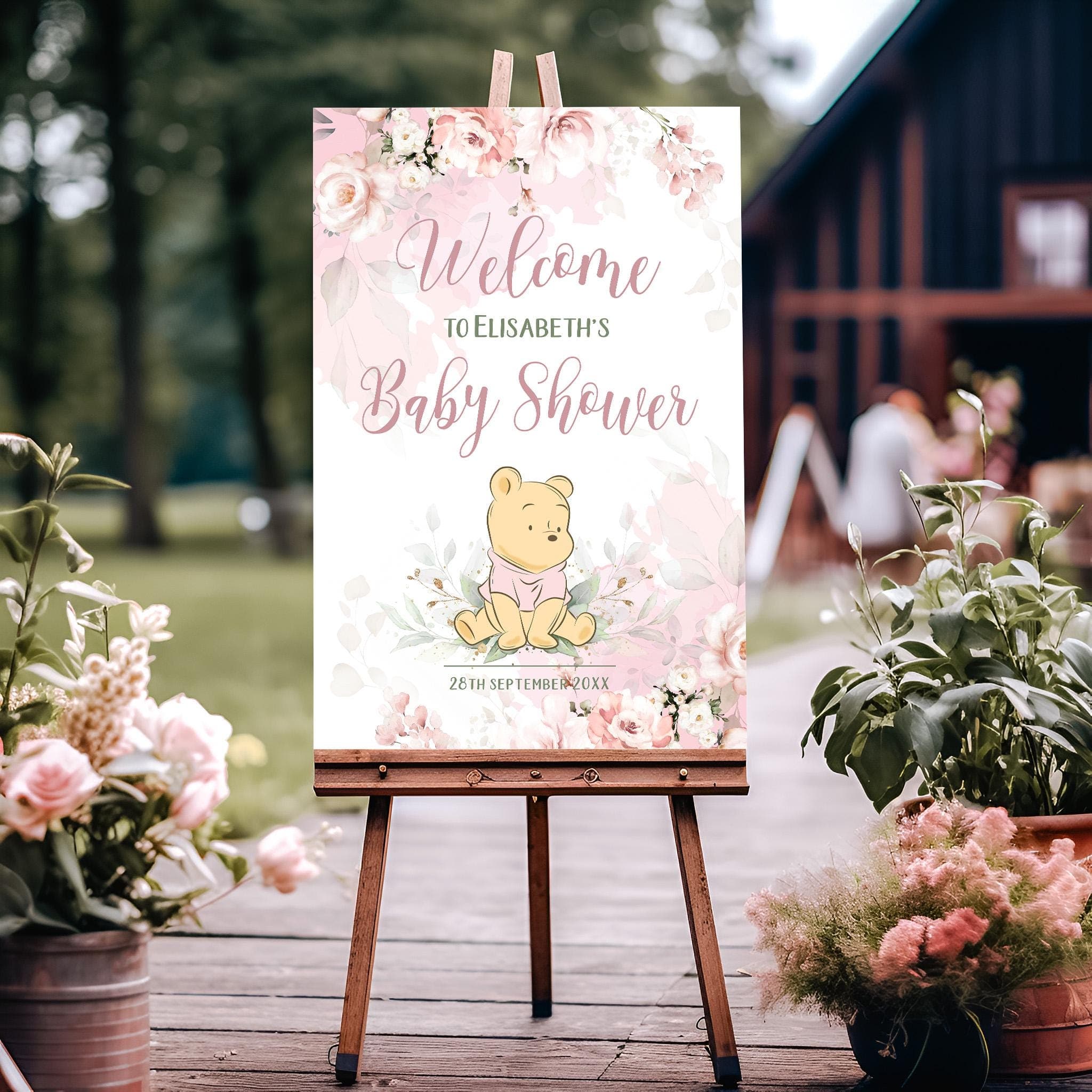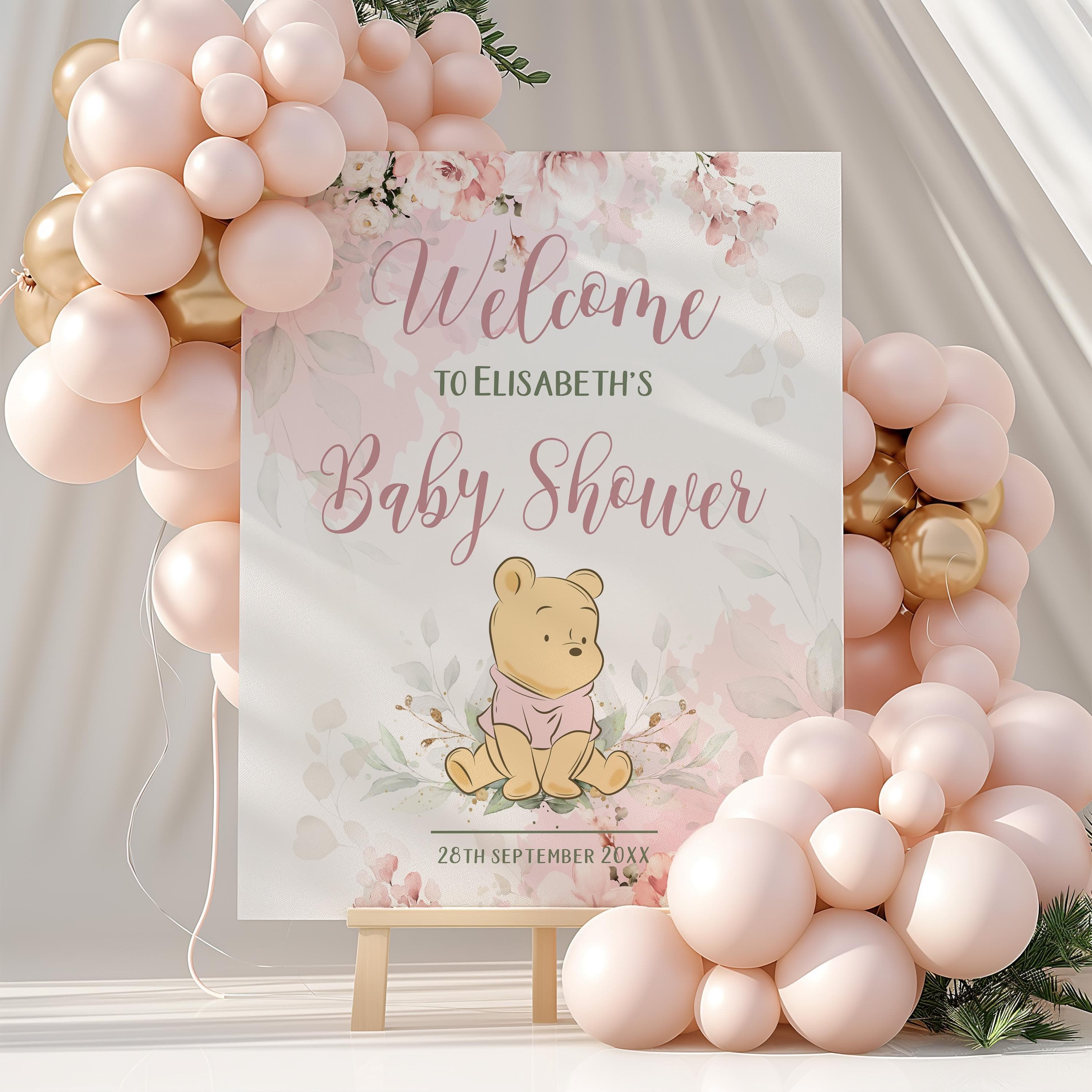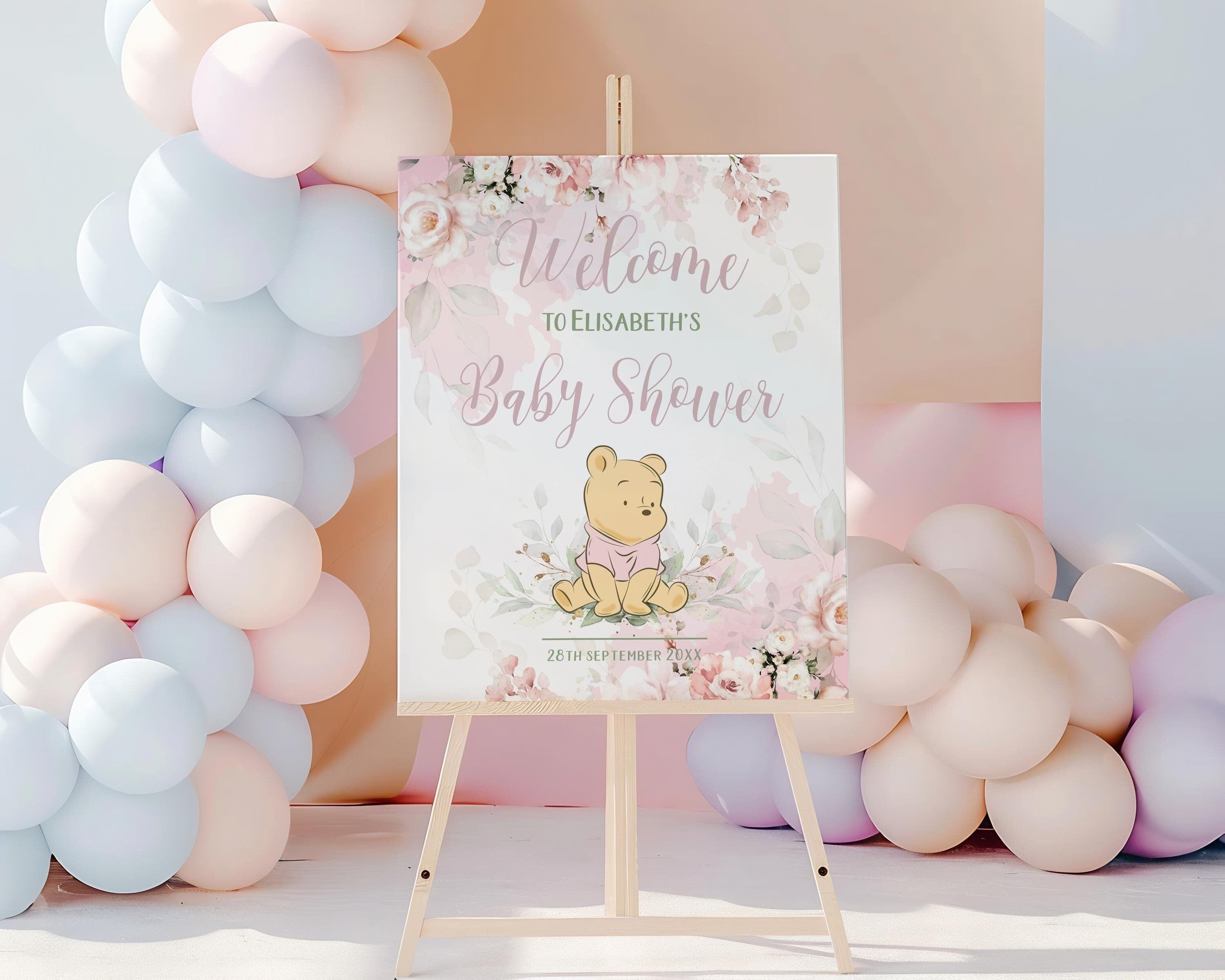 Pink Bear Baby Shower Welcome Sign | 5 Sizes | Personalized Baby Shower