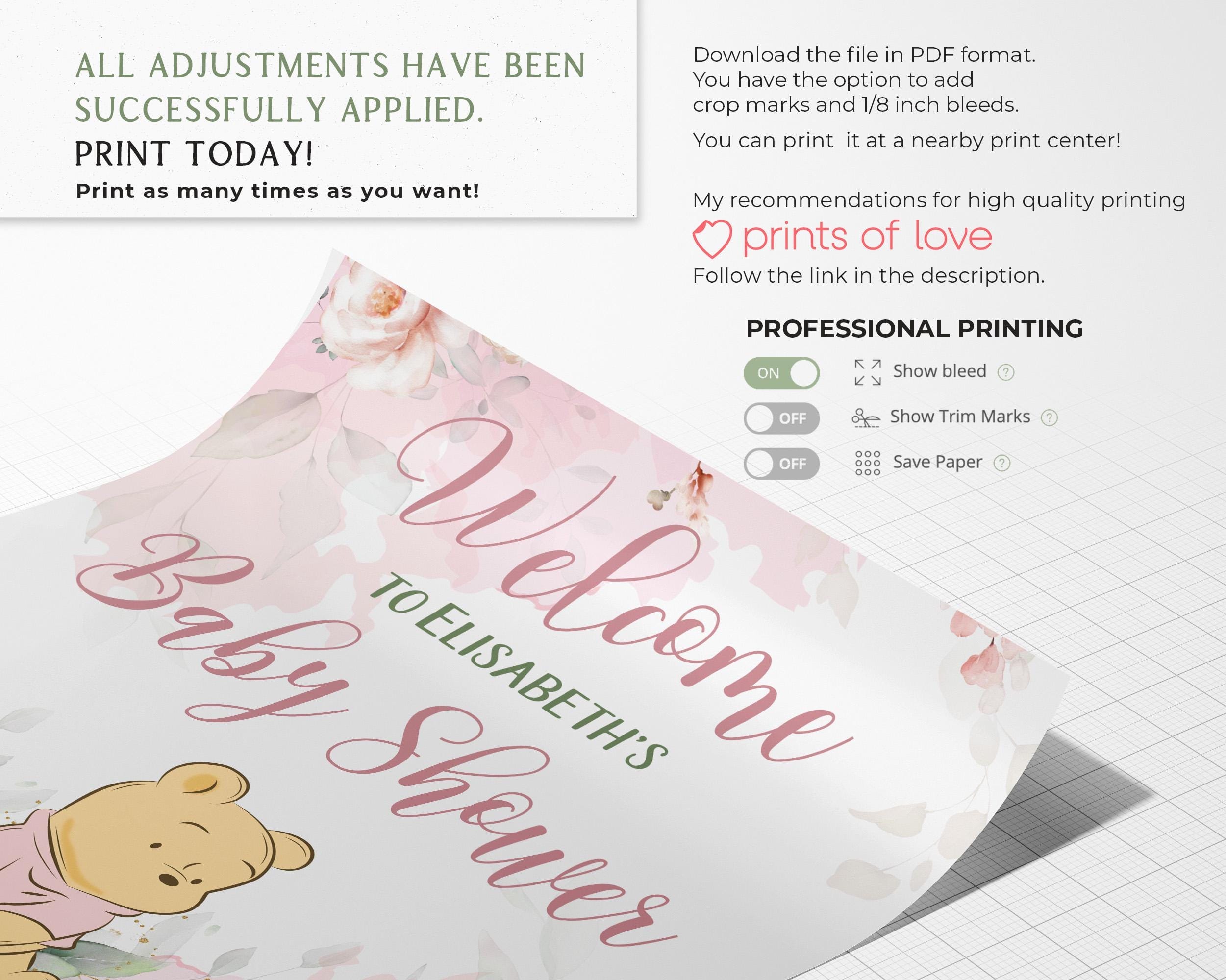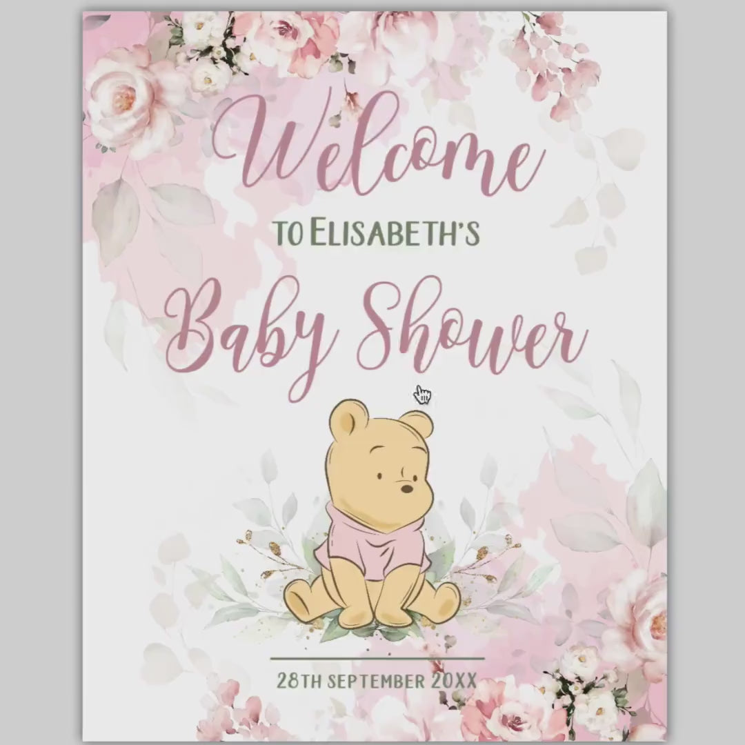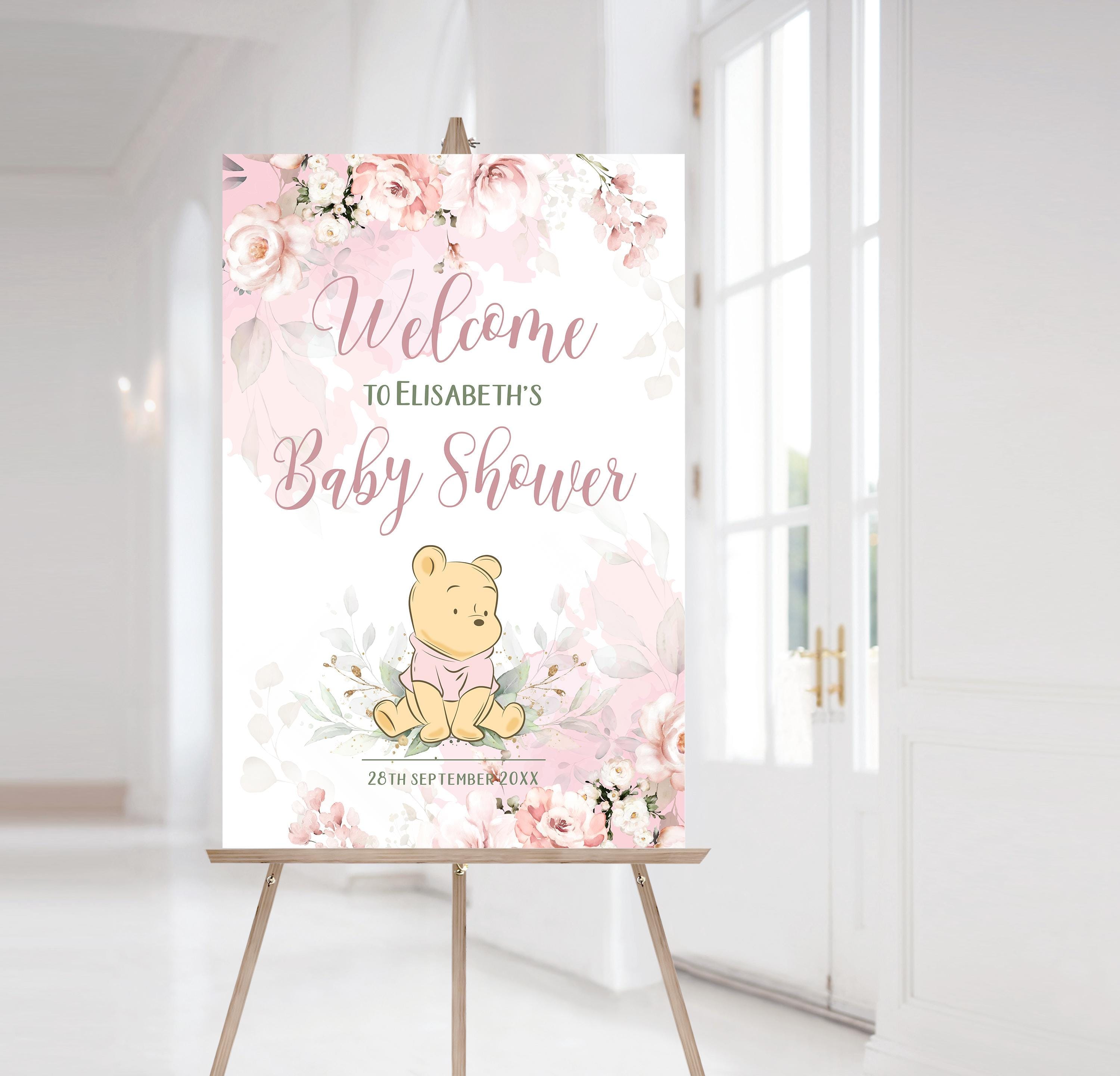 Pink Bear Baby Shower Welcome Sign | 5 Sizes | Personalized Baby Shower