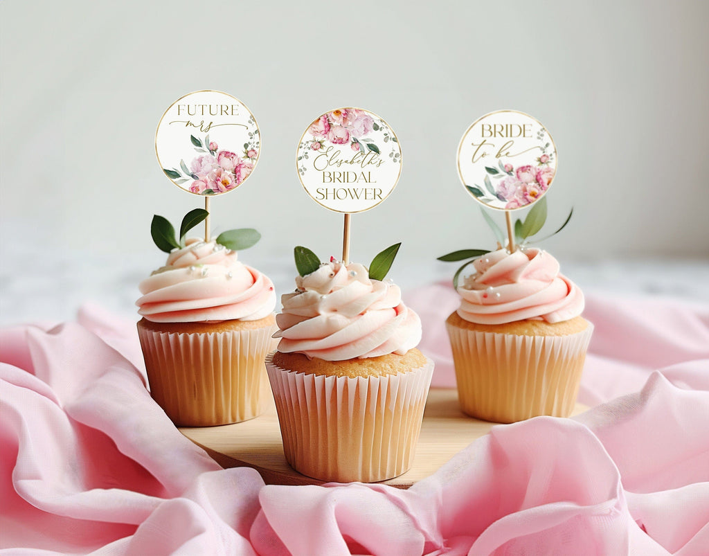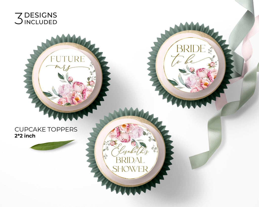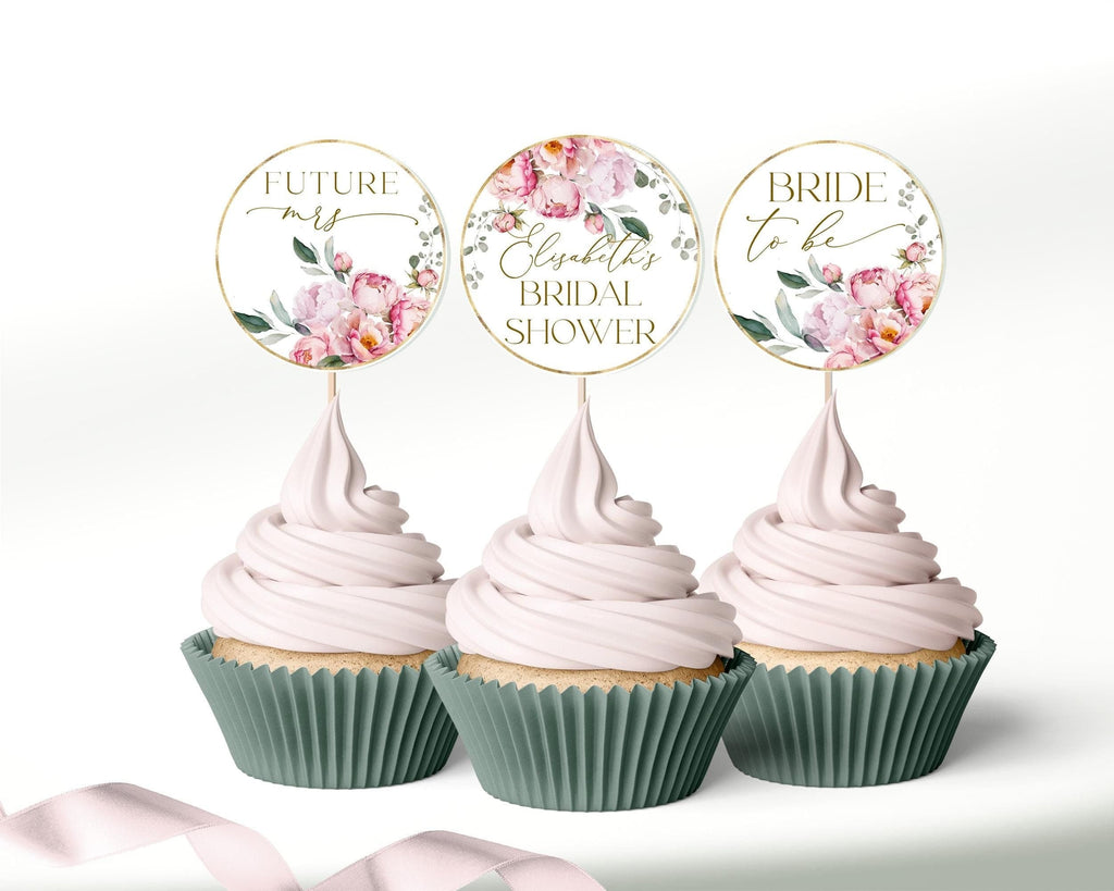 Pink Peony Bridal Shower Cupcake Toppers | 3 Designs Included