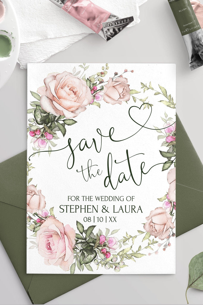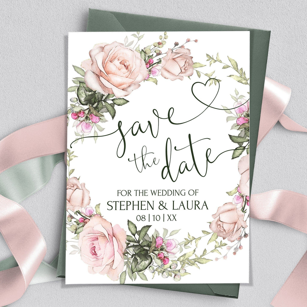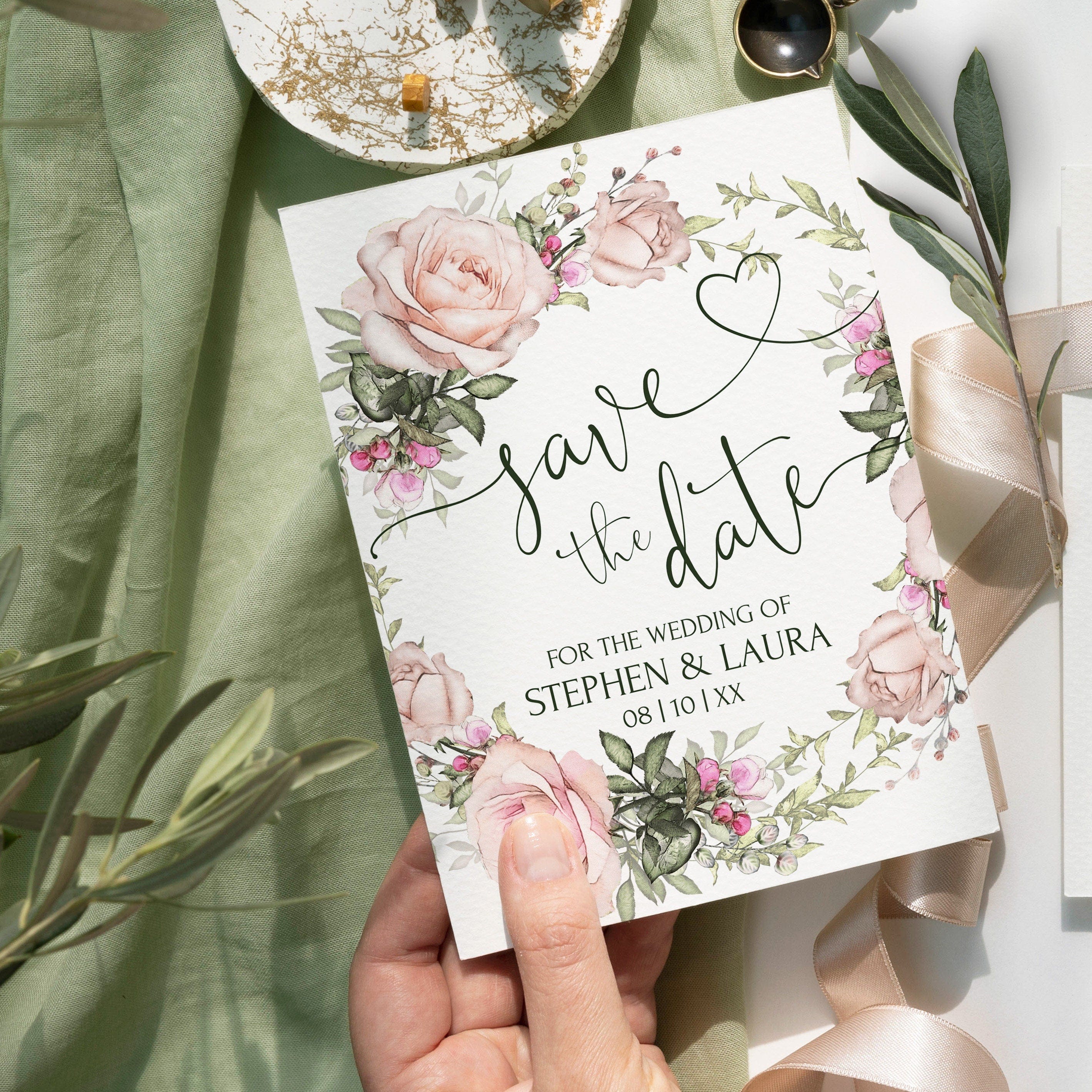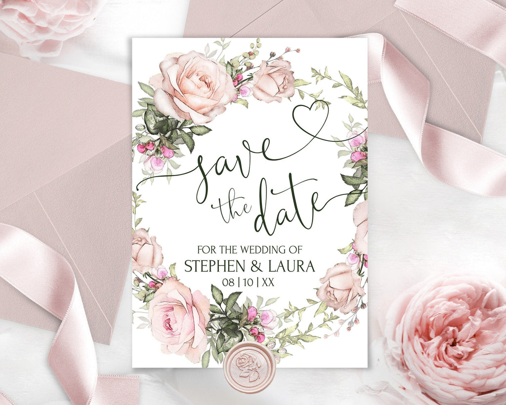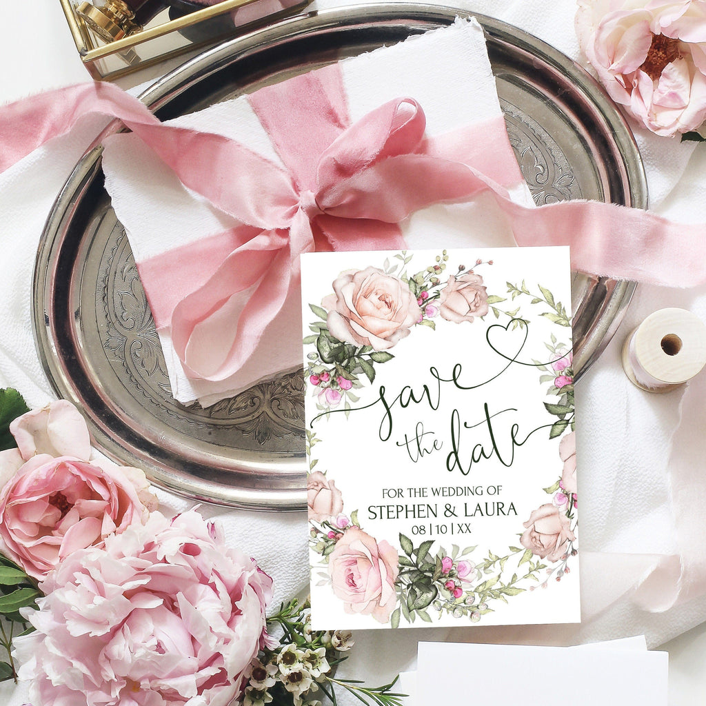 Rose Bloom Save the Date | Editable Blush Pink Floral Invitation | Printable Wedding Card