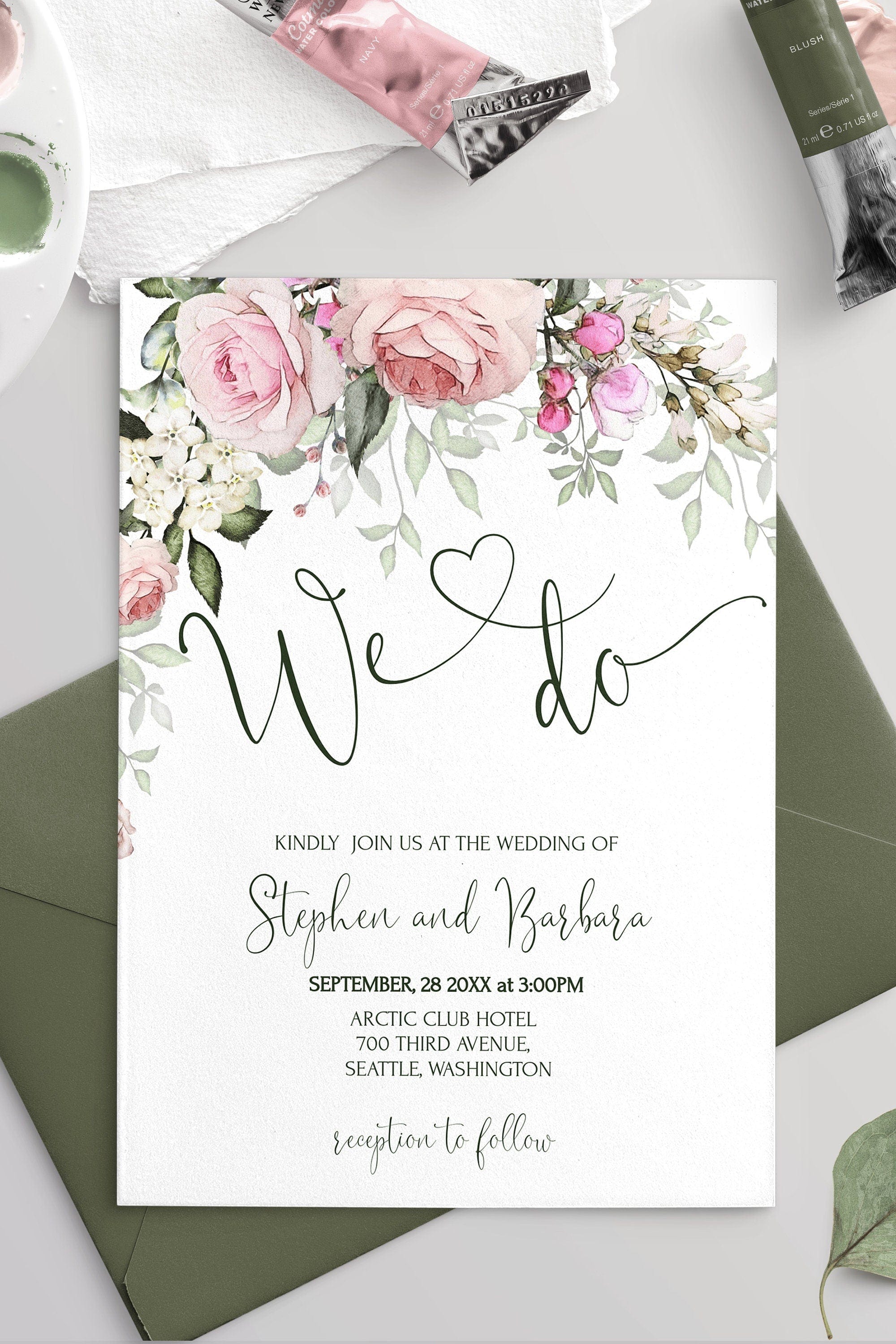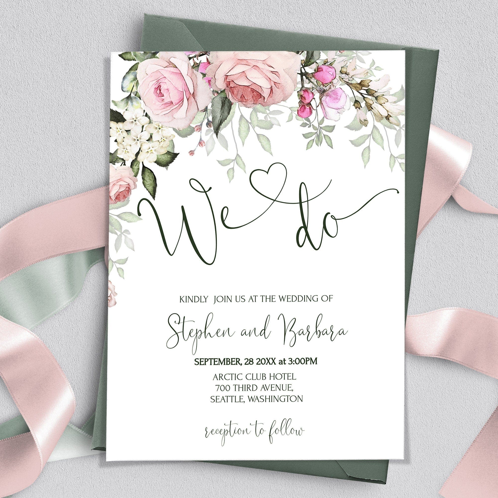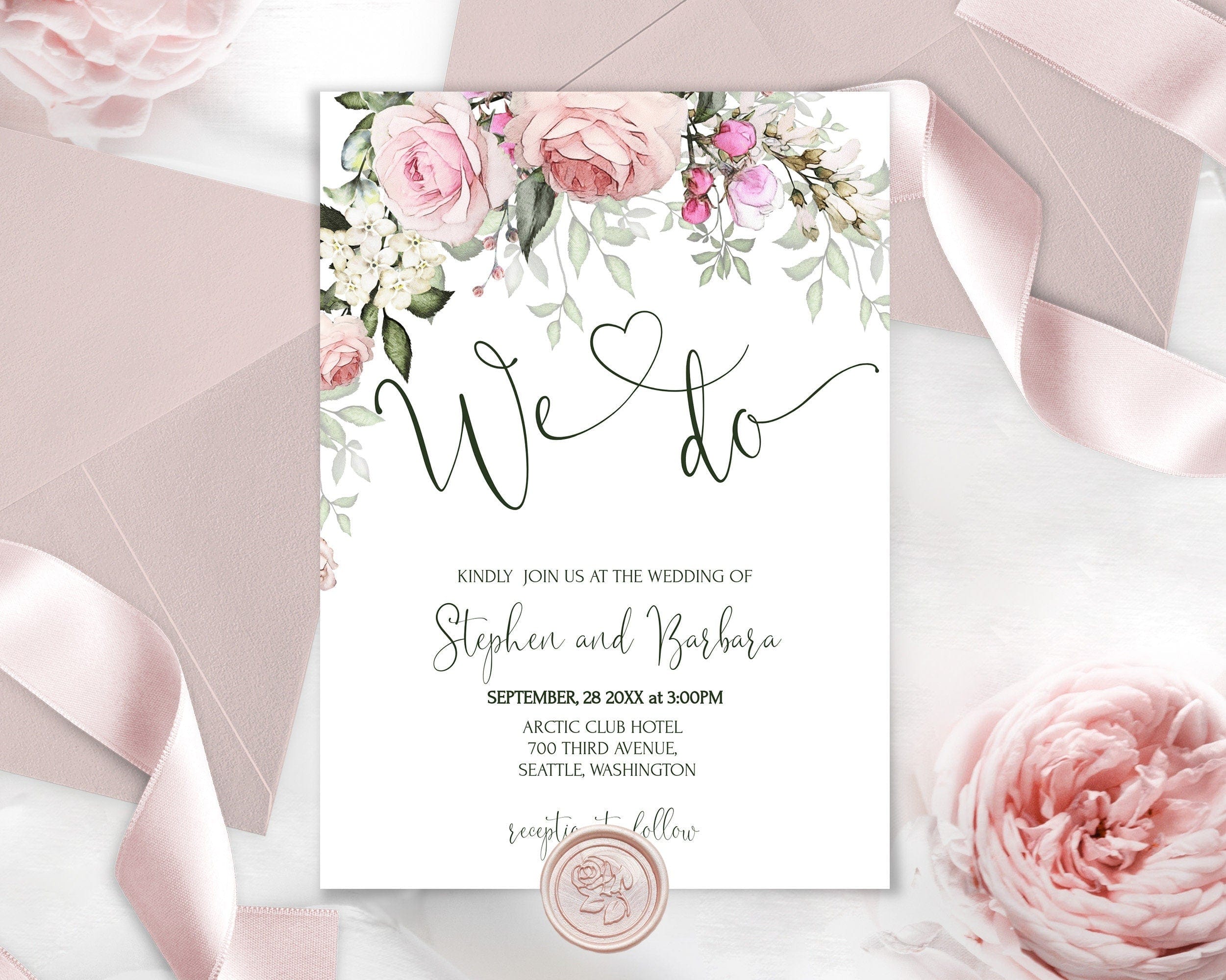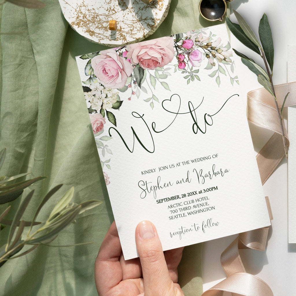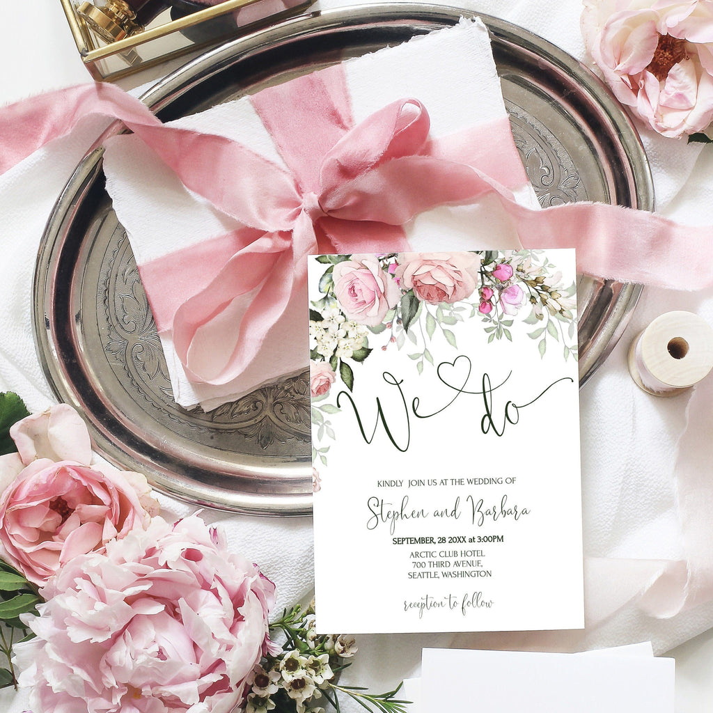 Rose Bloom Wedding Invitation, EDITABLE Templates